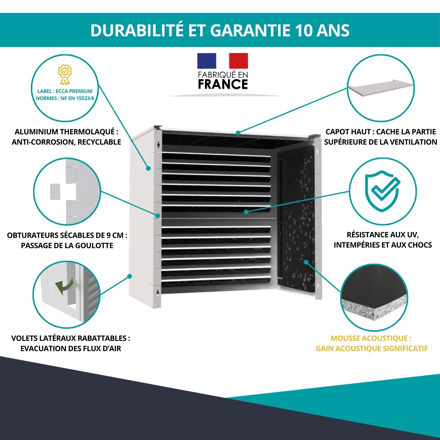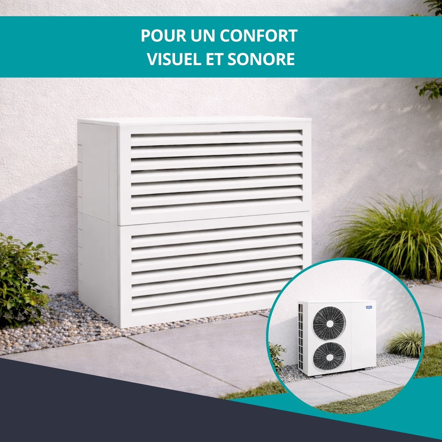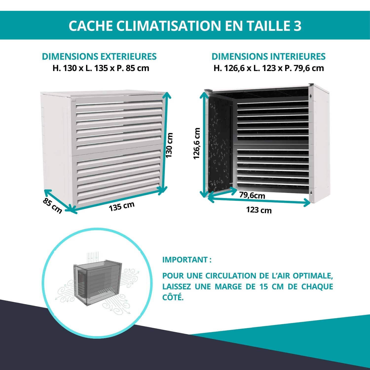 Cache clim acoustique Ventelle taille 3 – H. 130 x L. 135 x P. 85 cm – Blanc – Réf. HCI305HABL