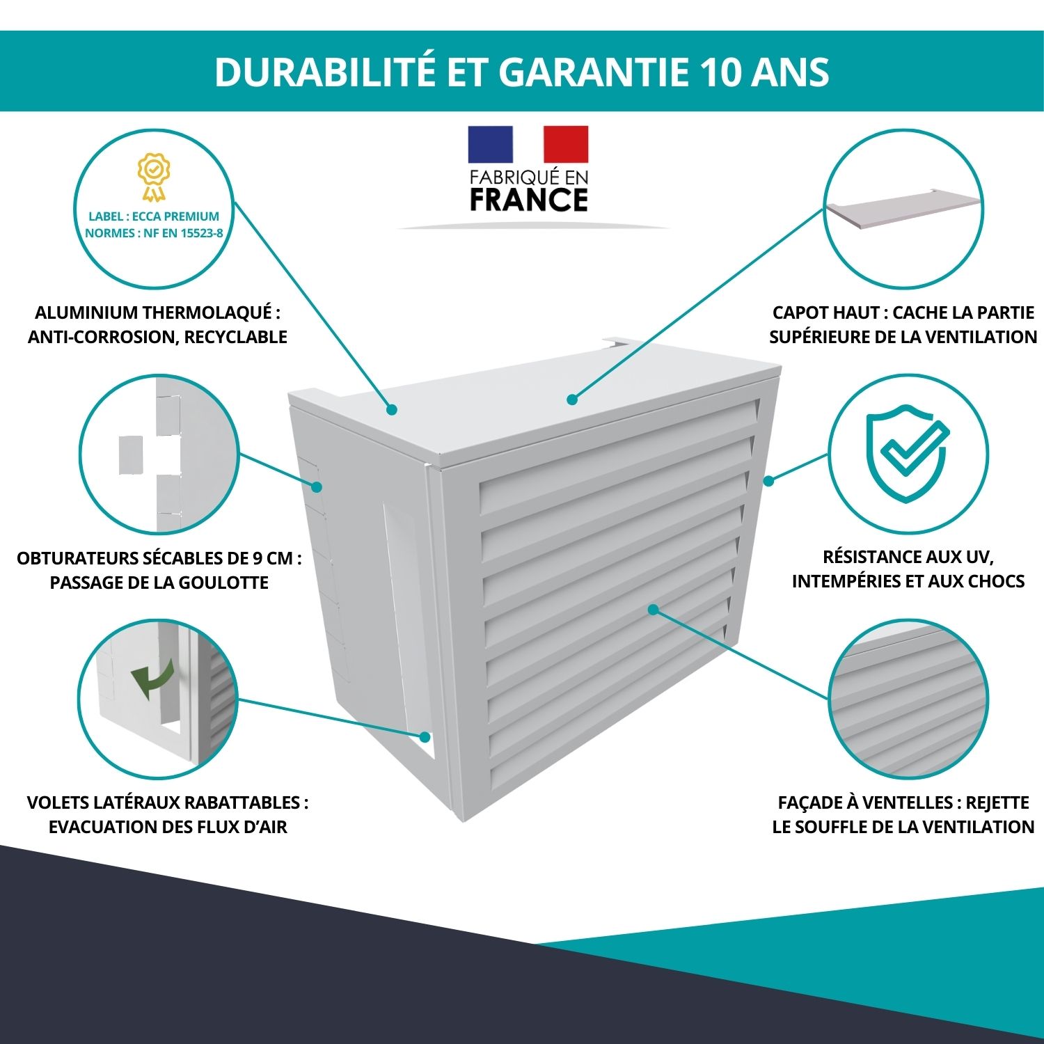 Cache clim ventelle en aluminium thermolaqué – H. 69x L. 90 x P. 50 cm – Blanc RAL9010
