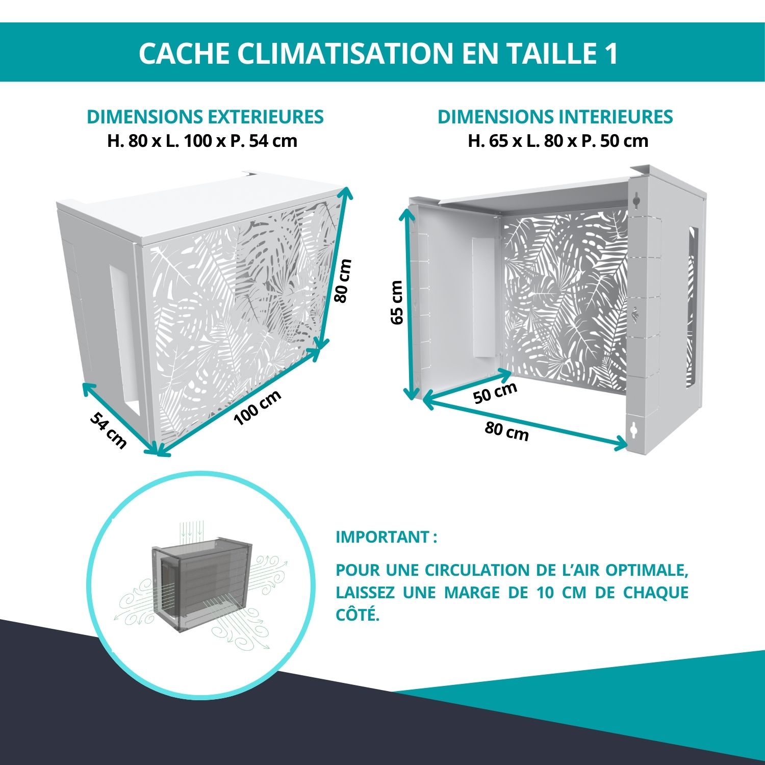 Cache clim jungle – Taille 1 : H. 80 x L. 100 x P. 54 cm – Blanc