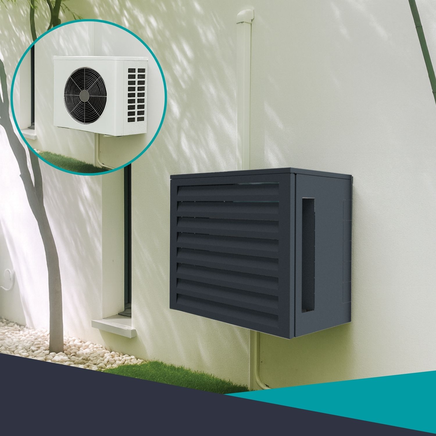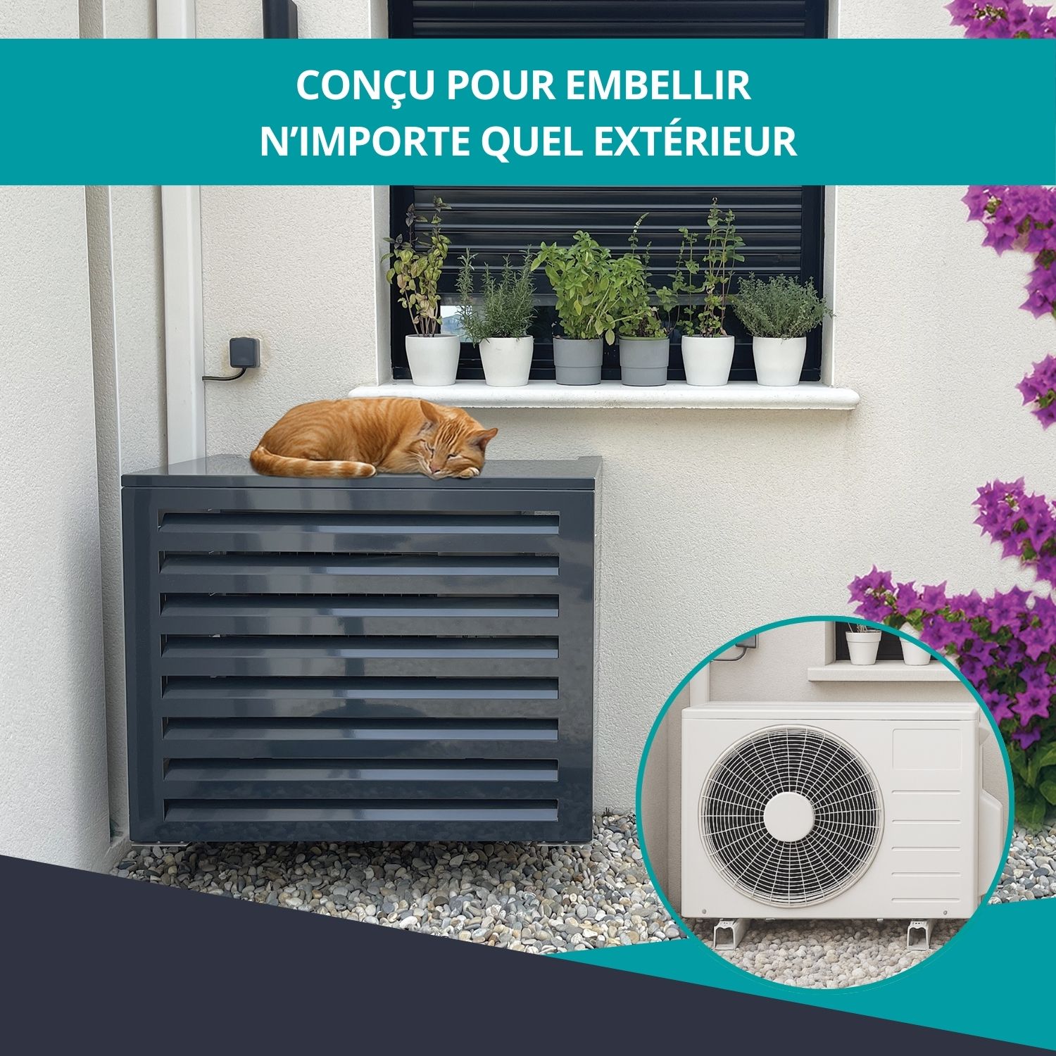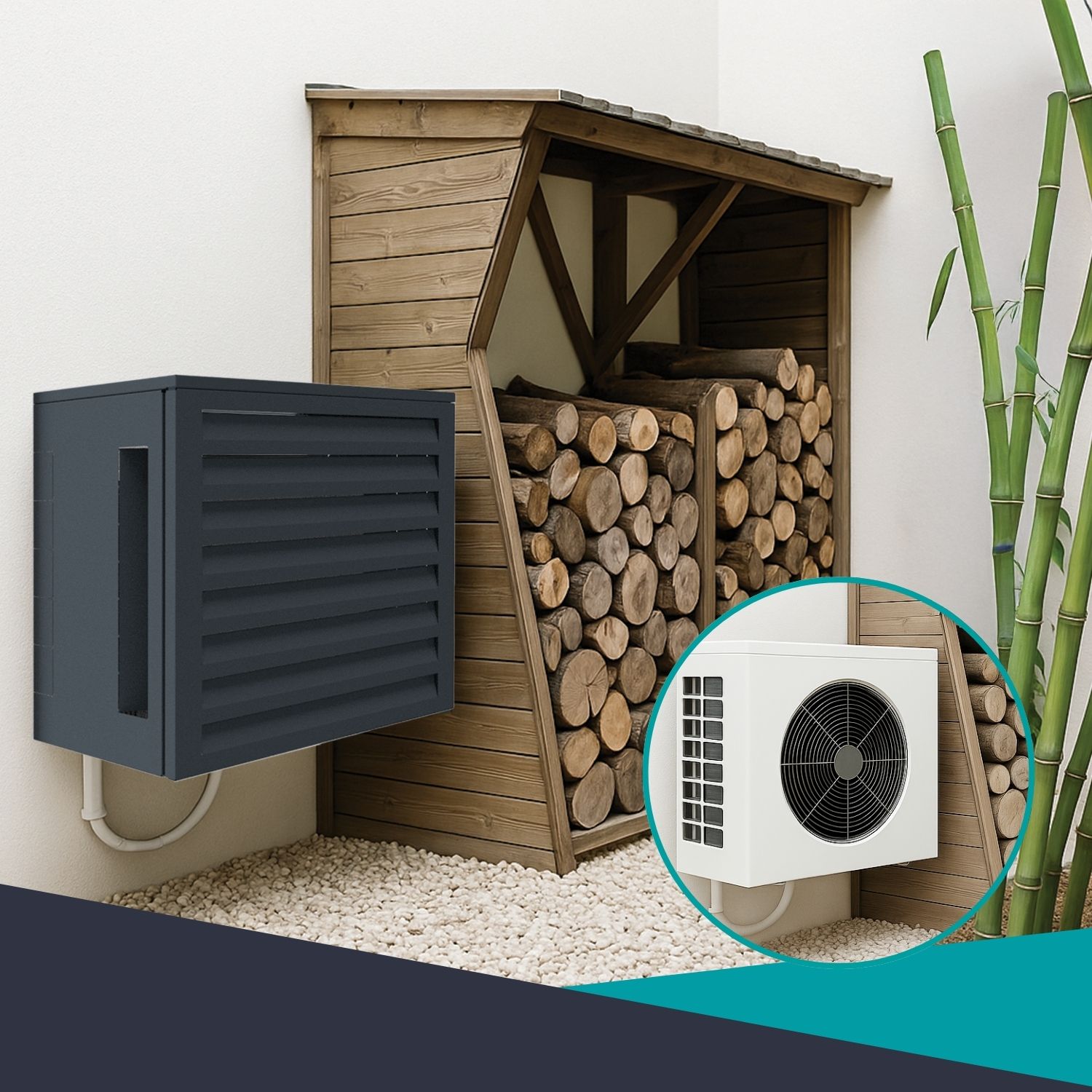 Cache Climatisation et pompe à chaleur ATOLE : solution d'habillage esthétique et design pour groupe extérieur de ventilation.