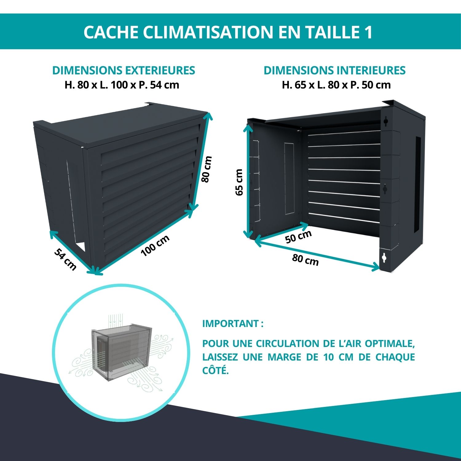 Cache clim ventelle en aluminium thermolaqué – H. 80 x L. 100 x P. 54 cm – Gris anthracite RAL7016.