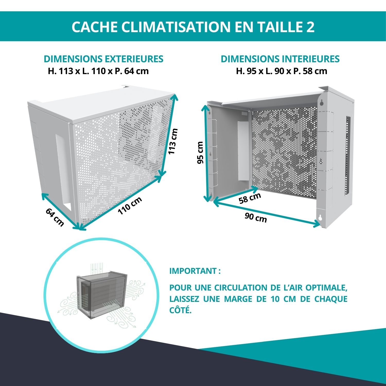 Cache clim baroque en aluminium thermolaqué – H. 113 x L. 110 x P. 64 cm – Blanc RAL9010.