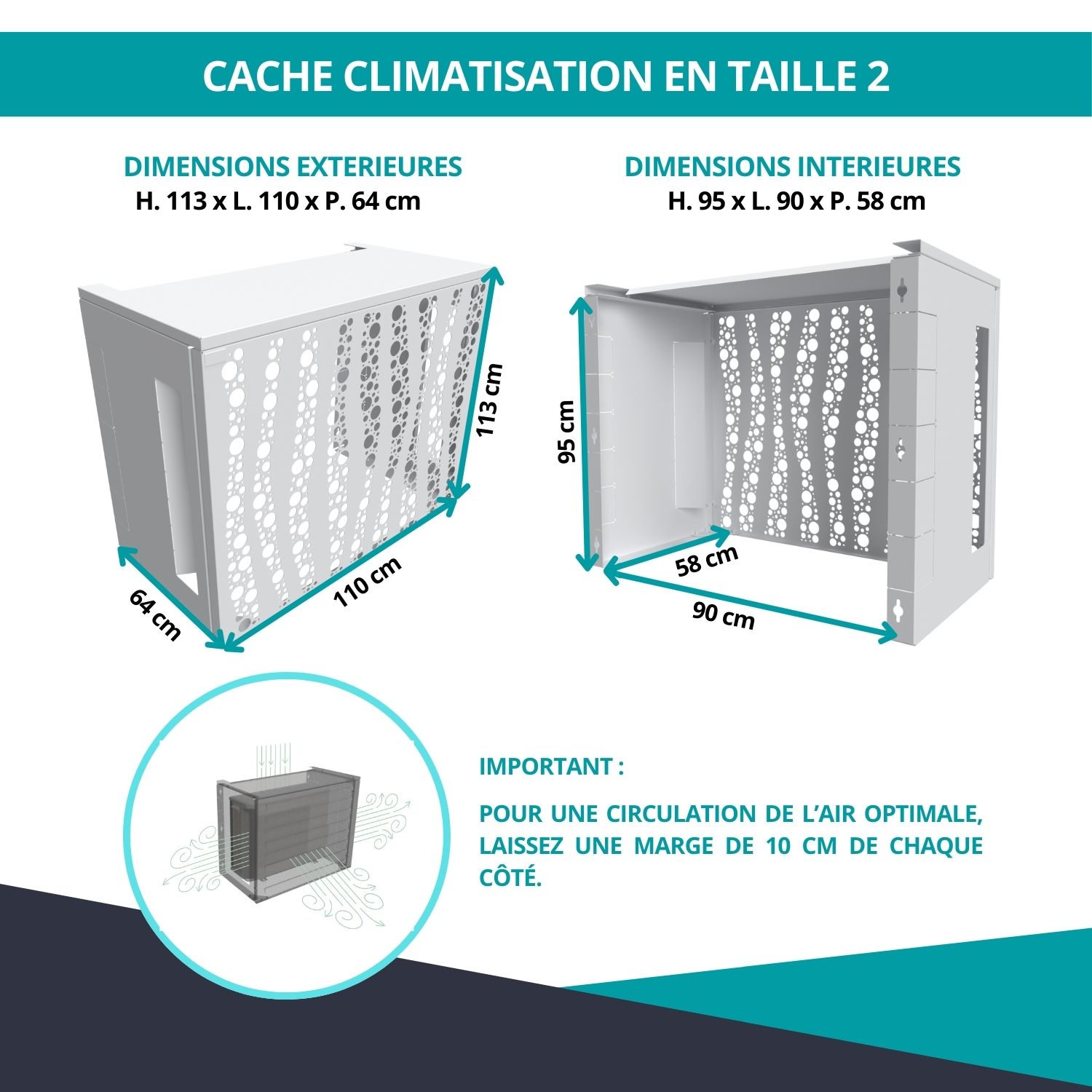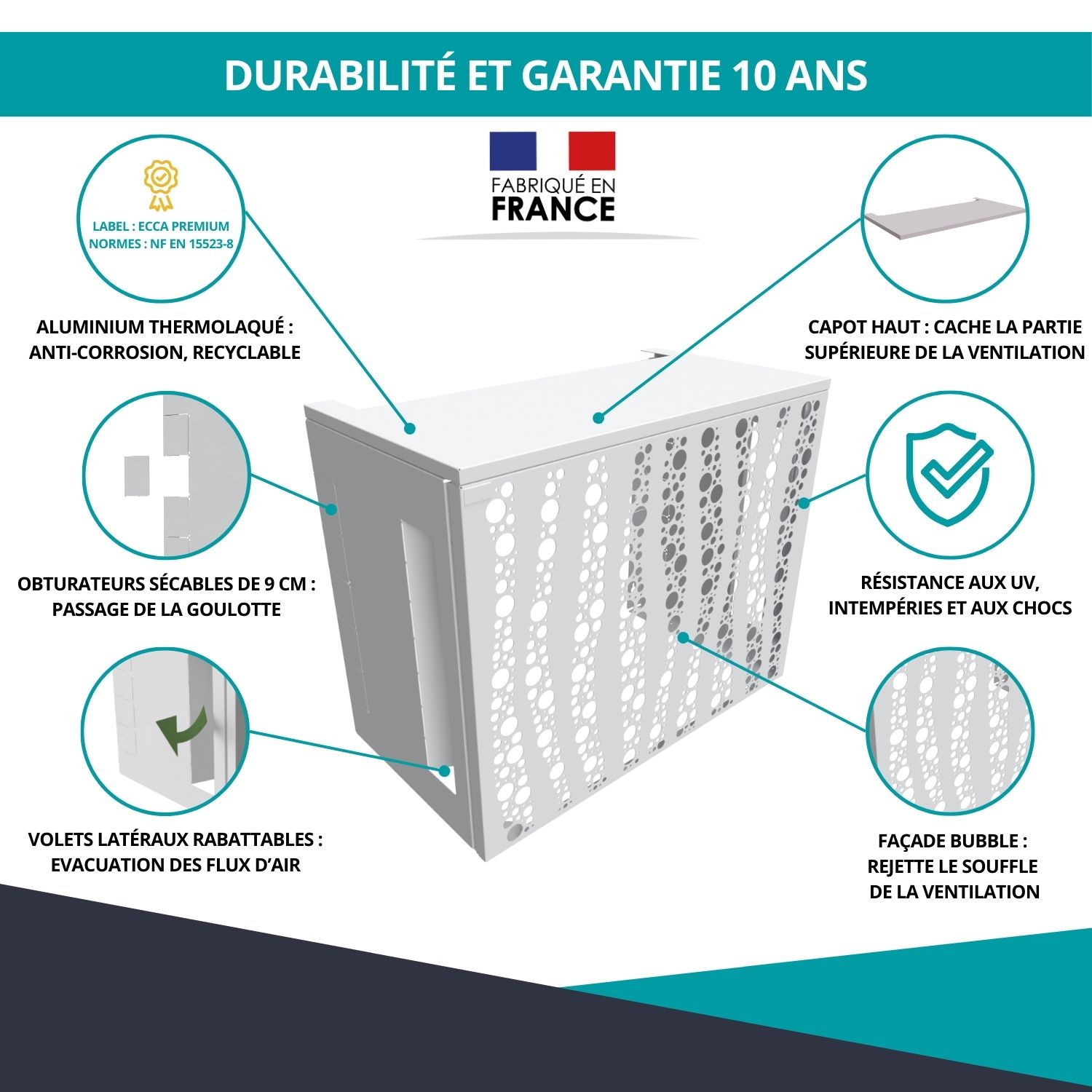 Cache clim bubble en aluminium thermolaqué – H. 113 x L. 110 x P. 64 cm – Blanc RAL9010.