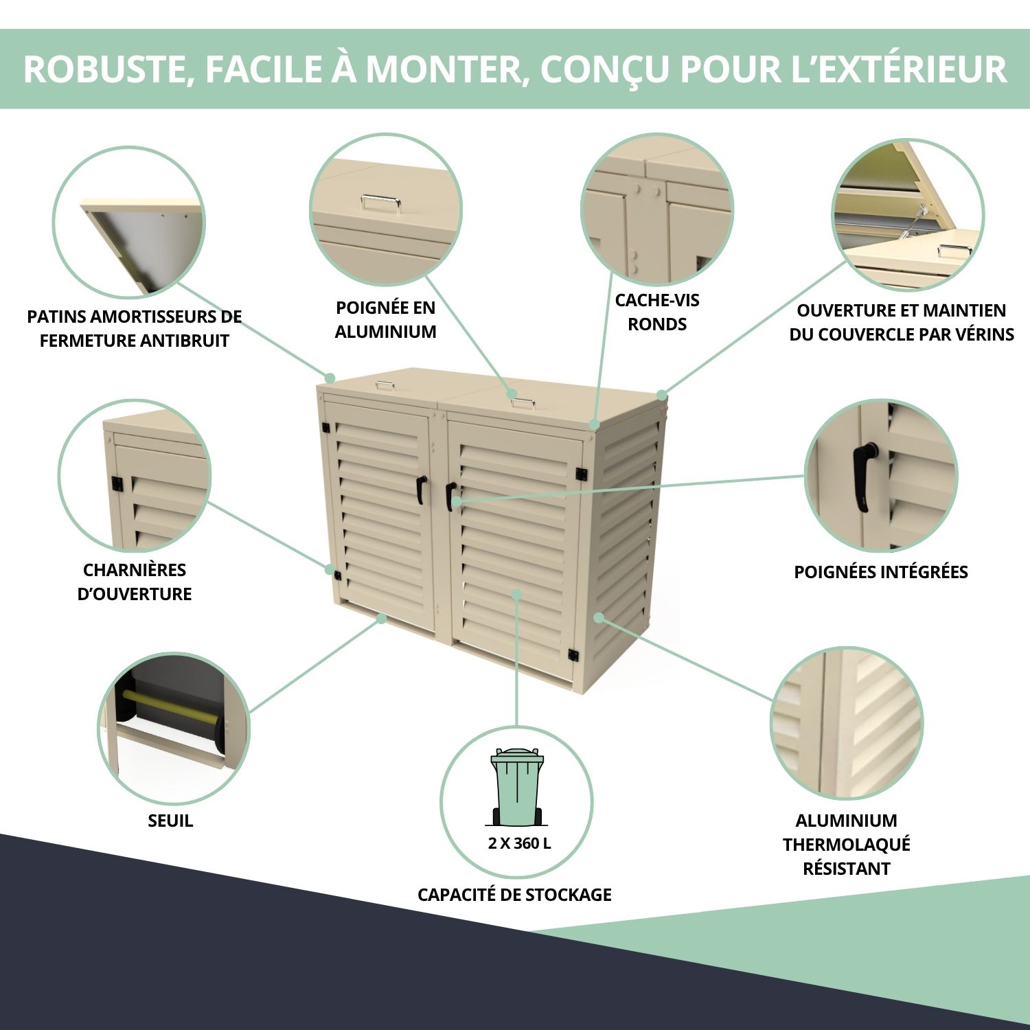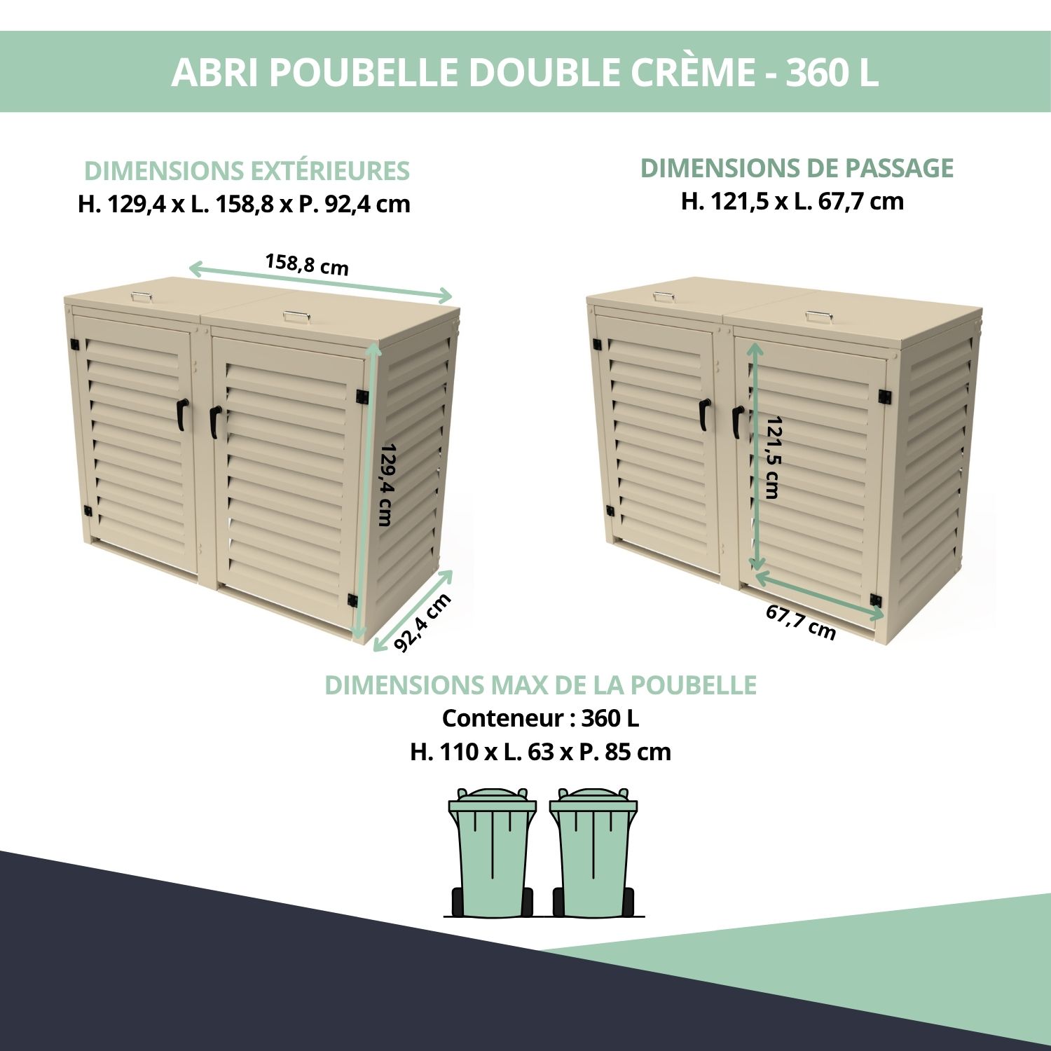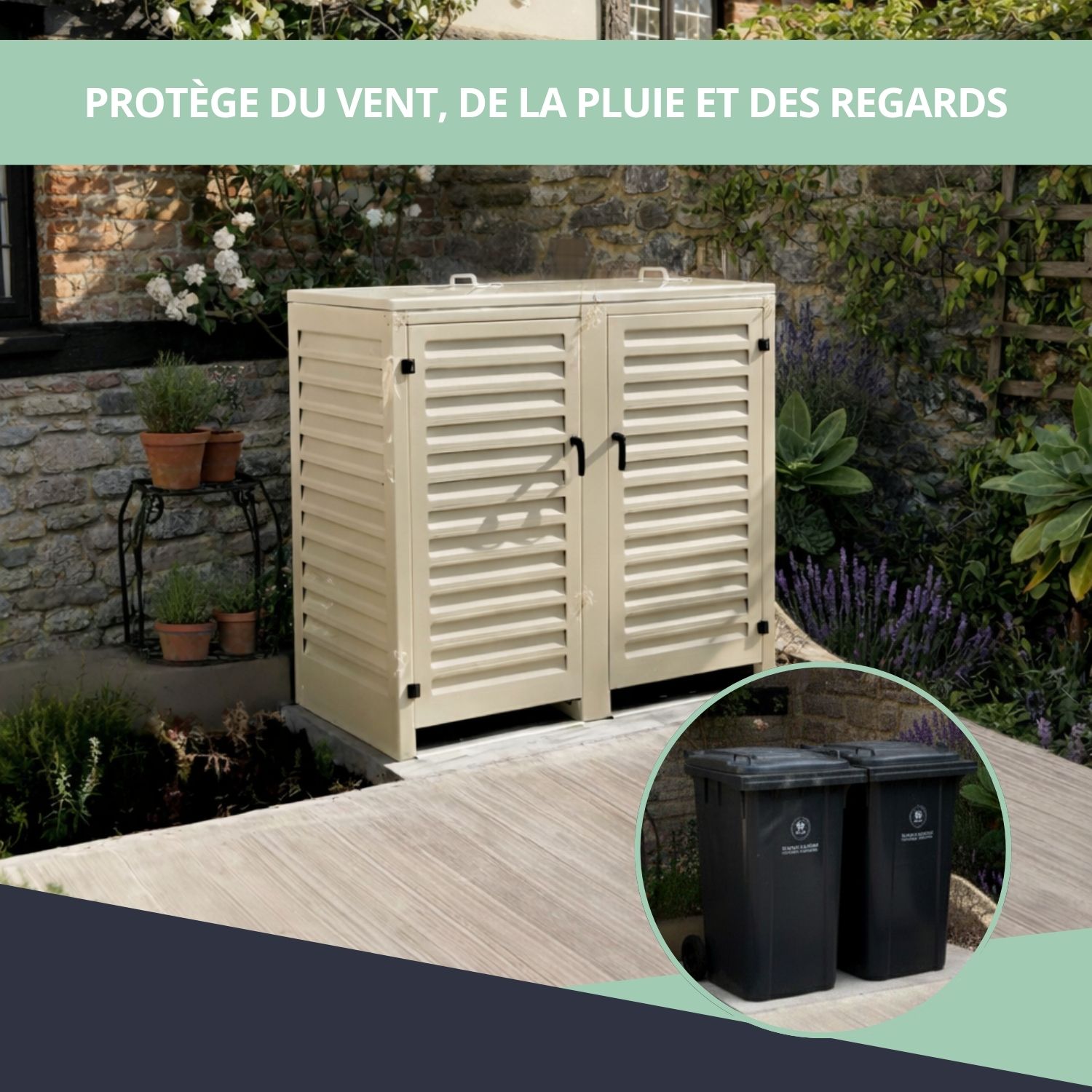 – Abri poubelle extérieur pour 2 conteneurs 360 L
