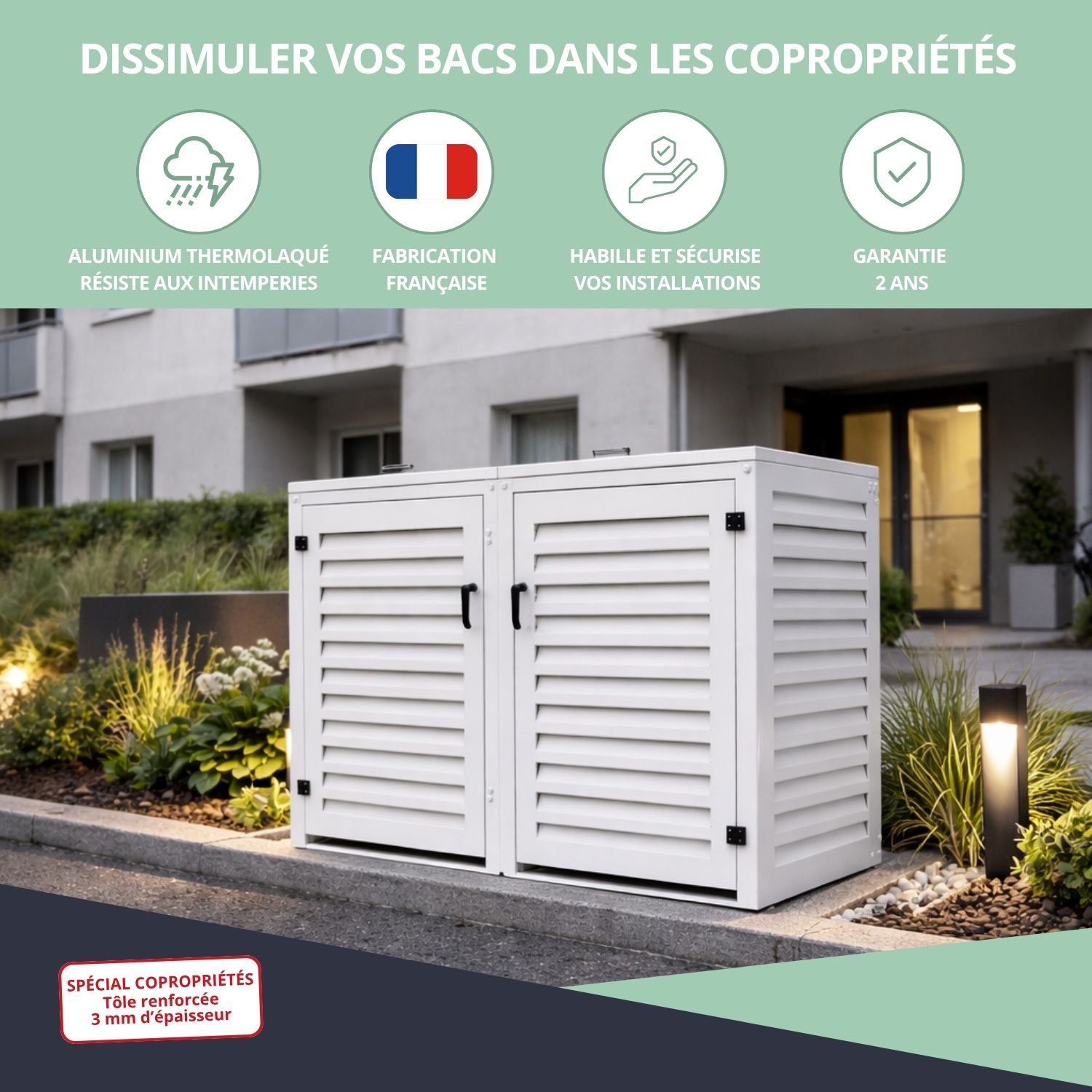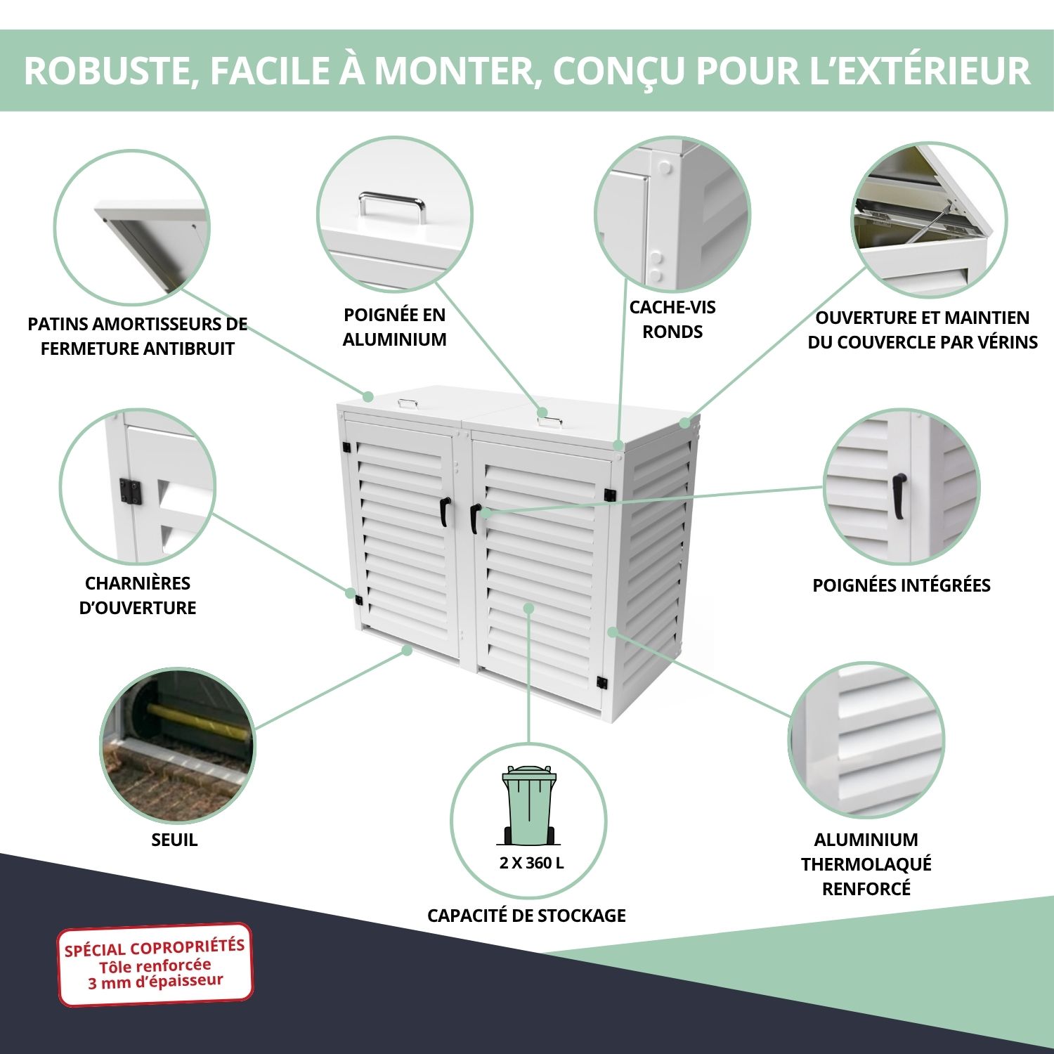– Abri poubelle extérieur spécial copropriété pour 2 conteneurs 360 L