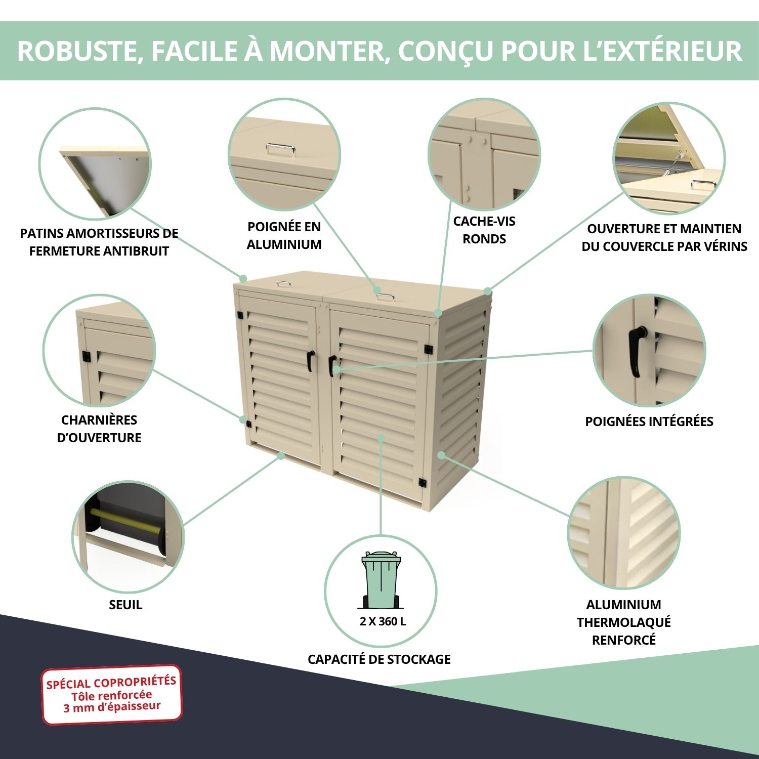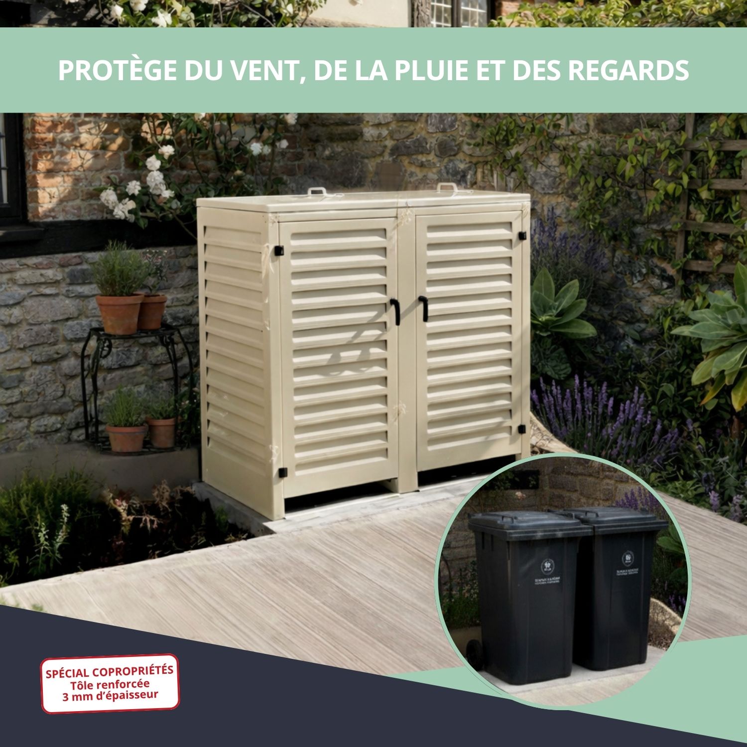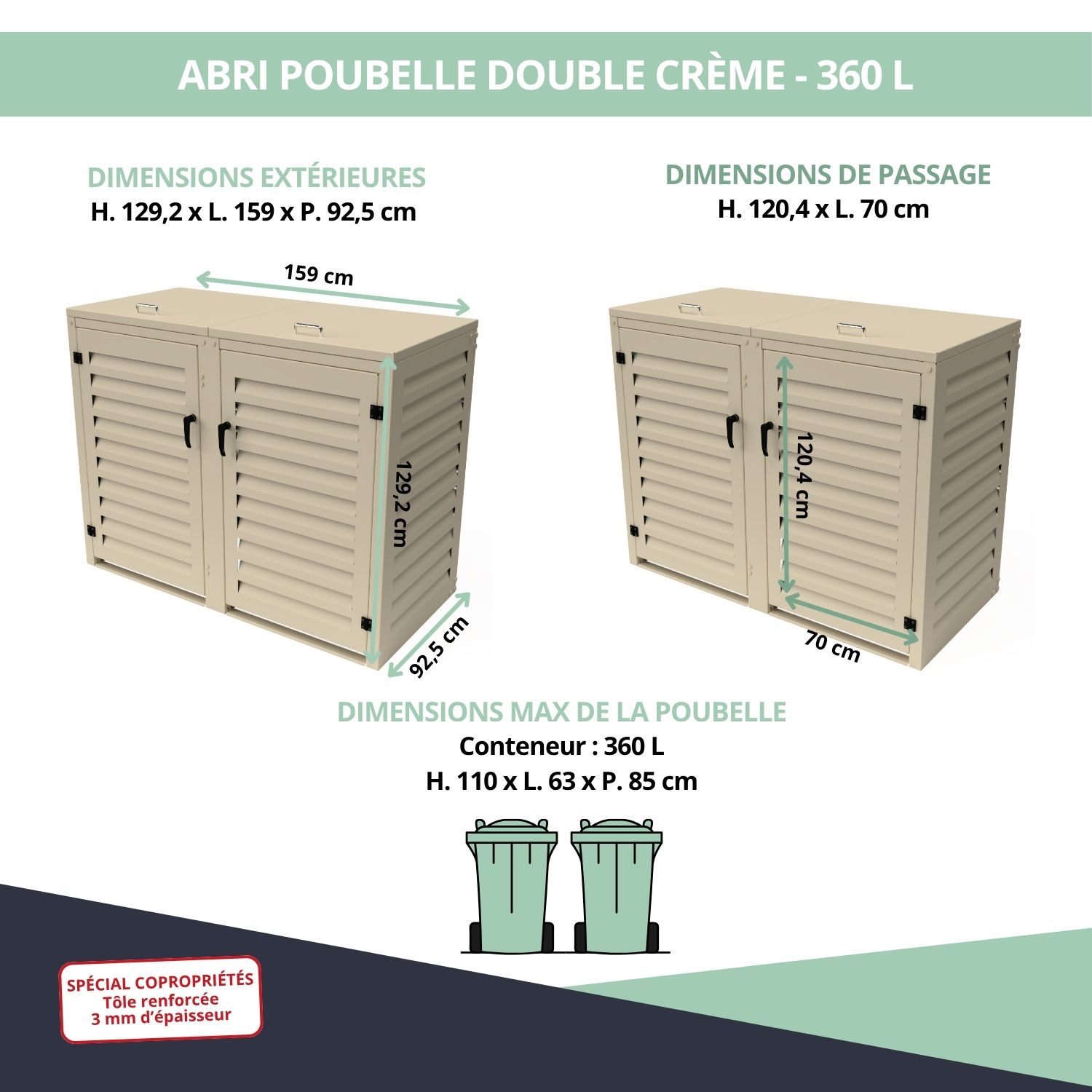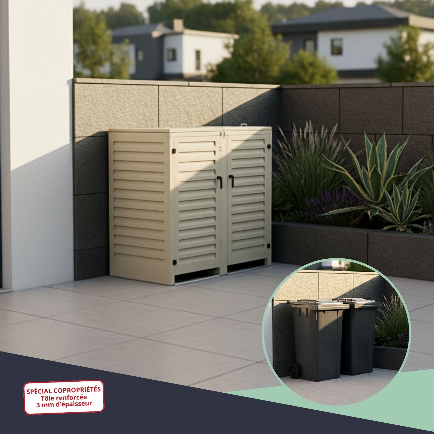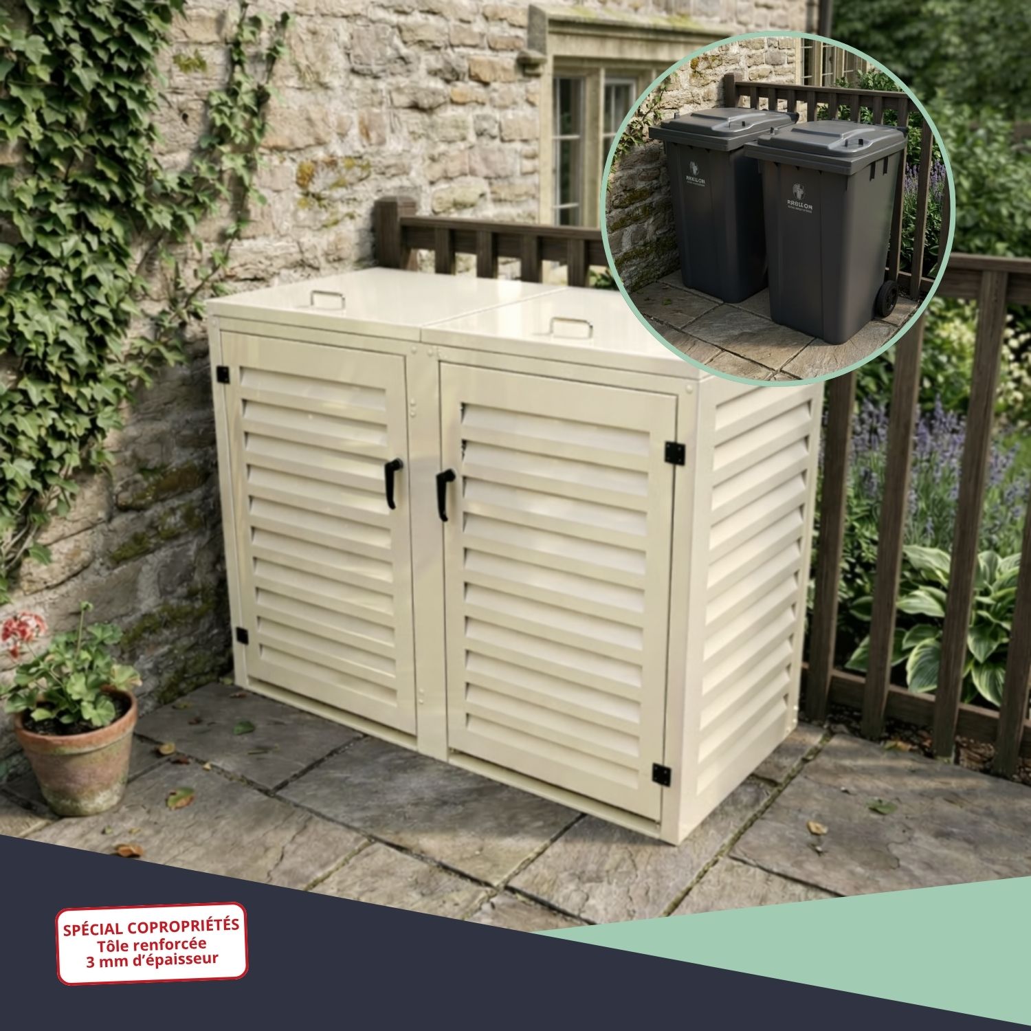 – Abri poubelle extérieur spécial copropriété pour 2 conteneurs 360 L