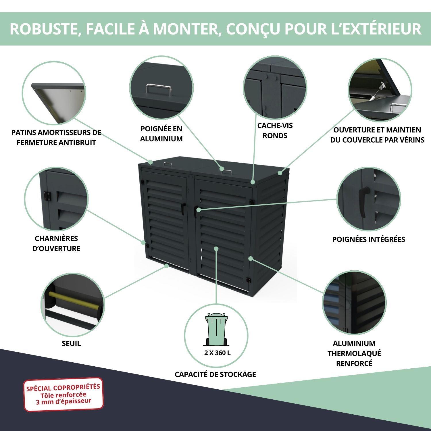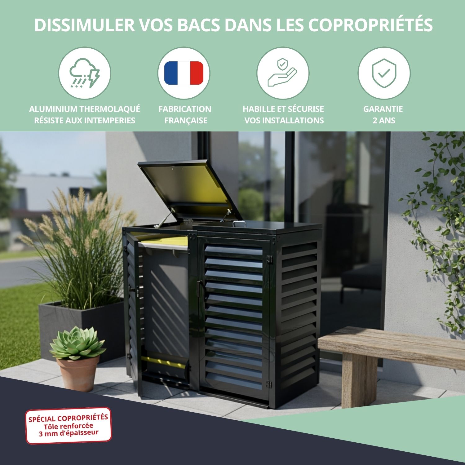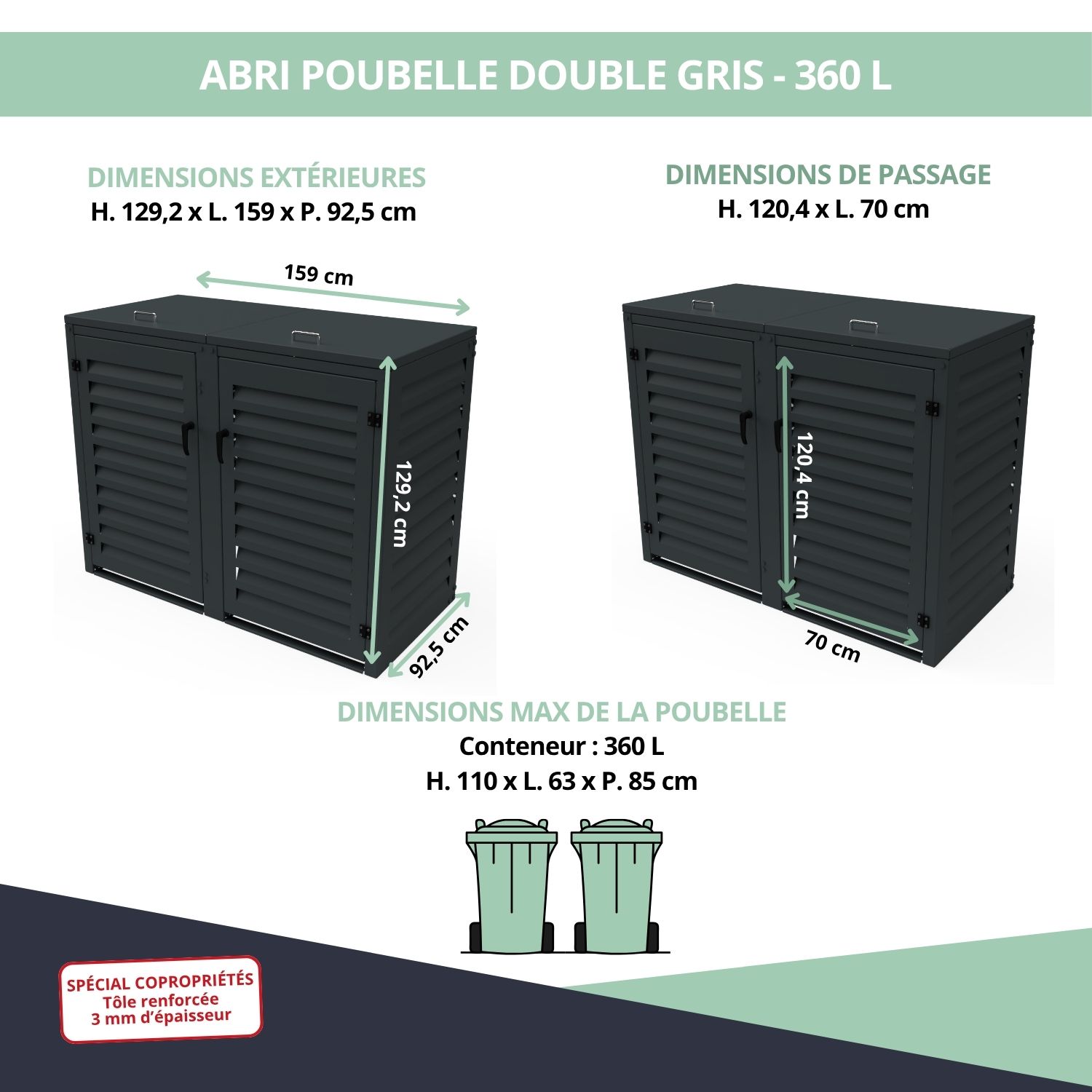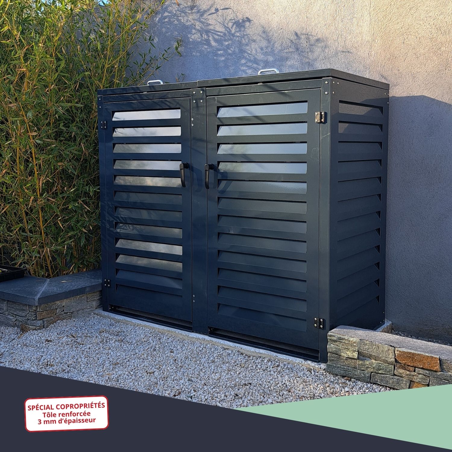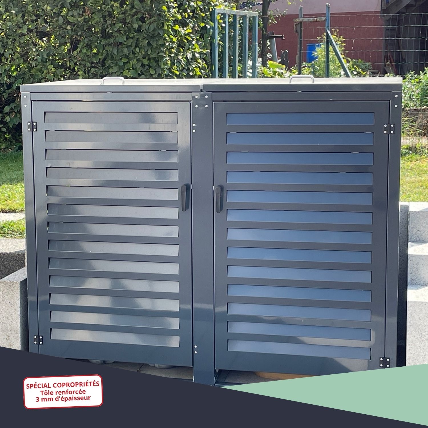 – Abri poubelle extérieur spécial copropriété pour 2 conteneurs 360 L