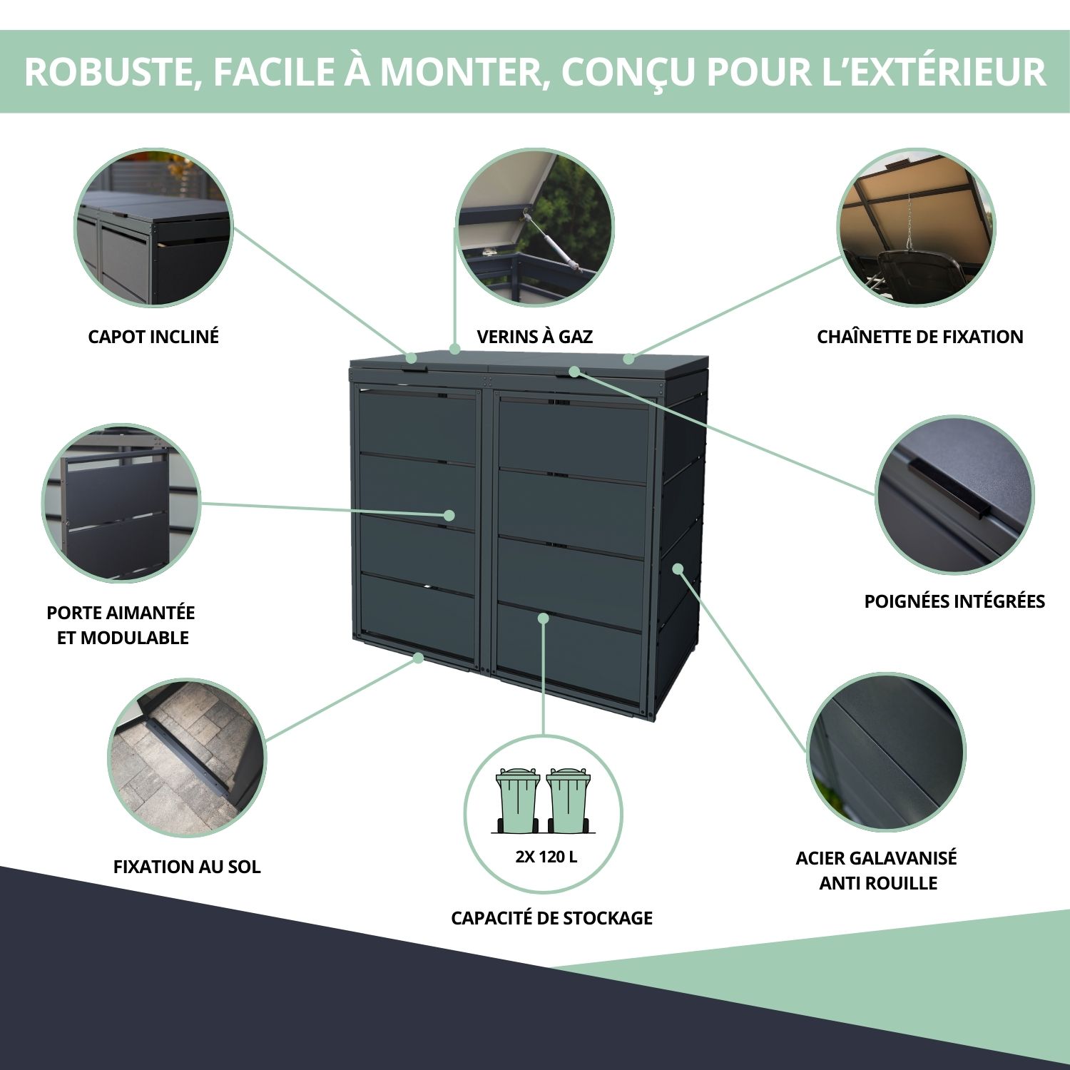 – Conçu pour 2 conteneurs de 120 L
