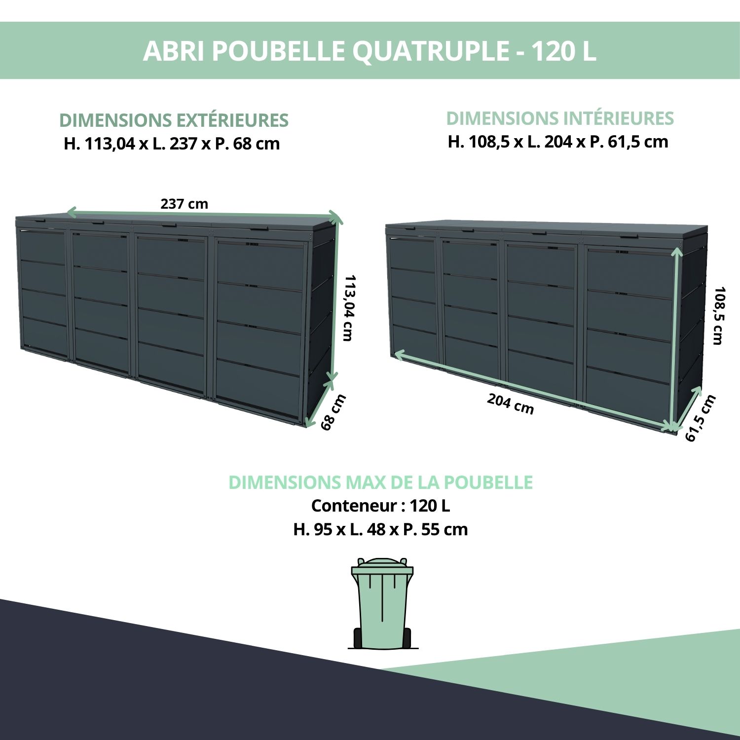 Cache poubelle extérieur quadruple – Gris anthracite – 113 x 237 x 68 cm – 4 poubelles 120 L – Ref. MAC121GR-MACMC121GR-MACMC121GR-MACMC121GR