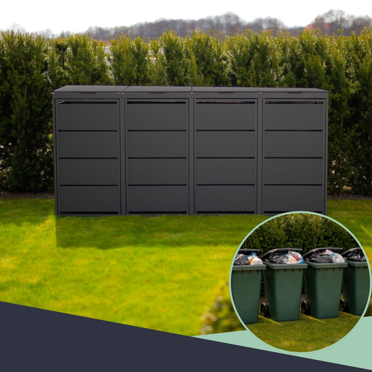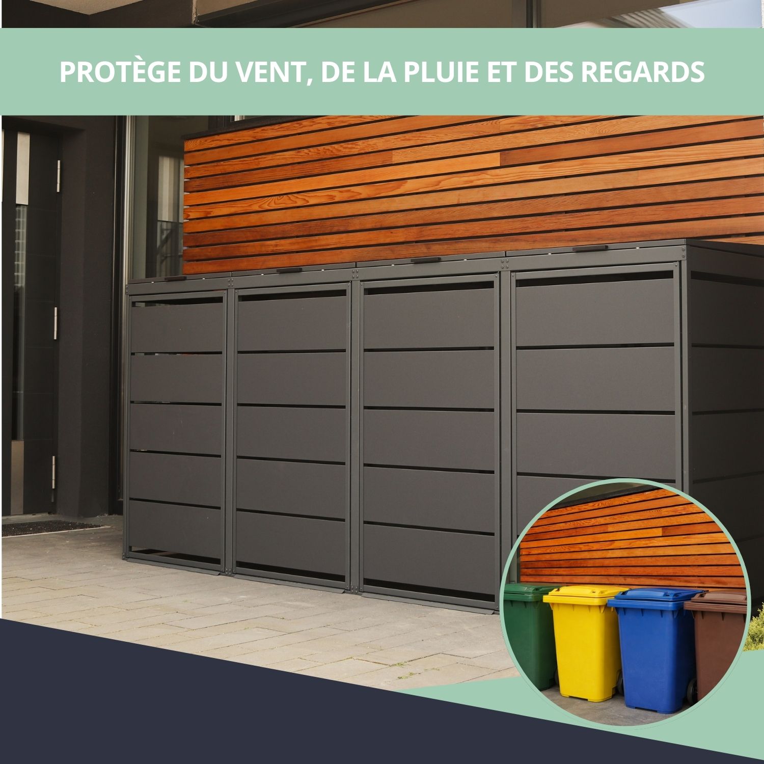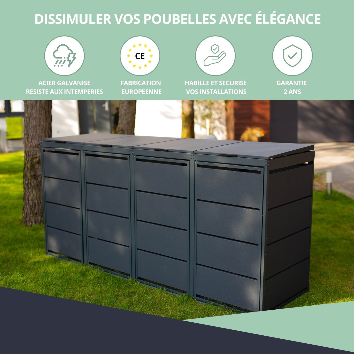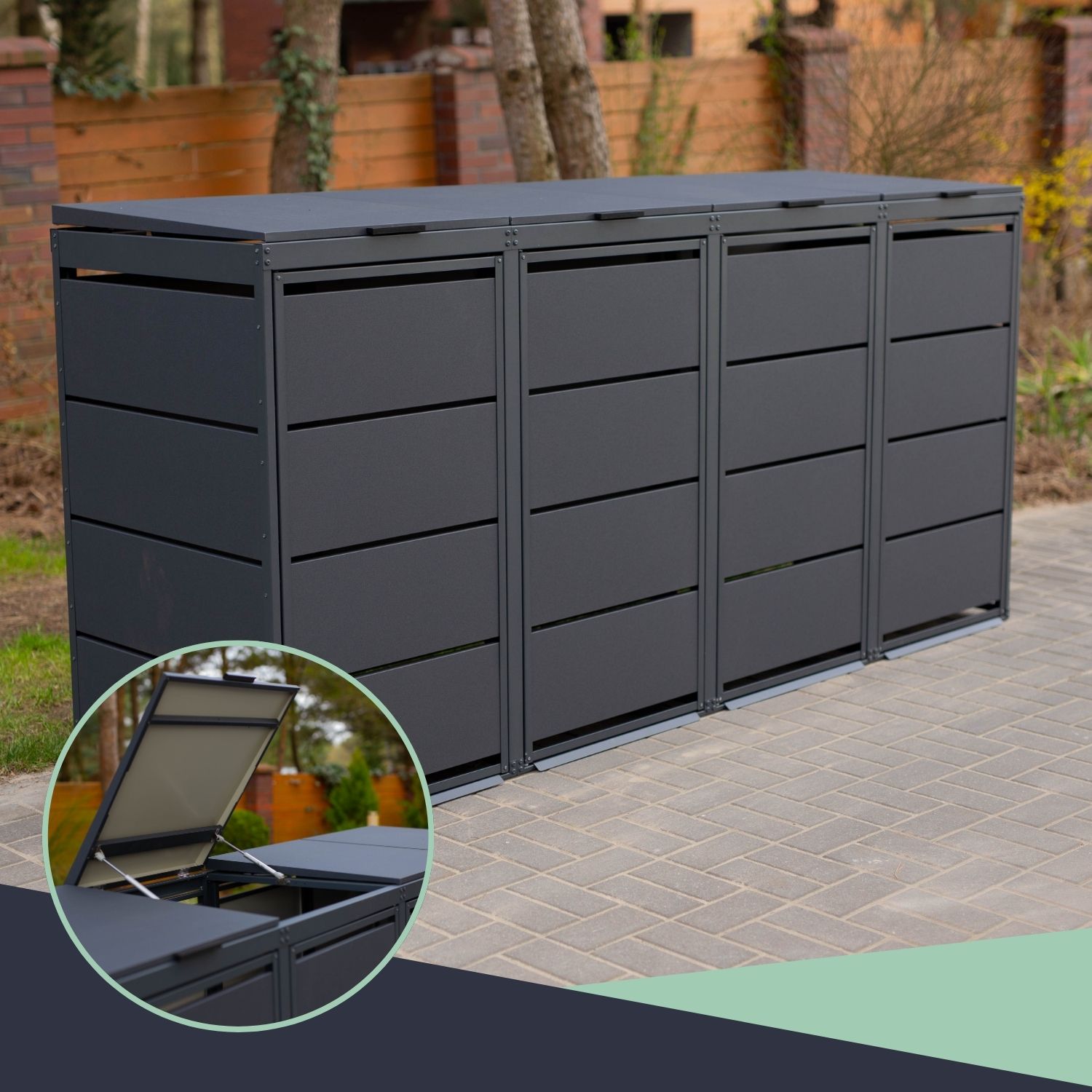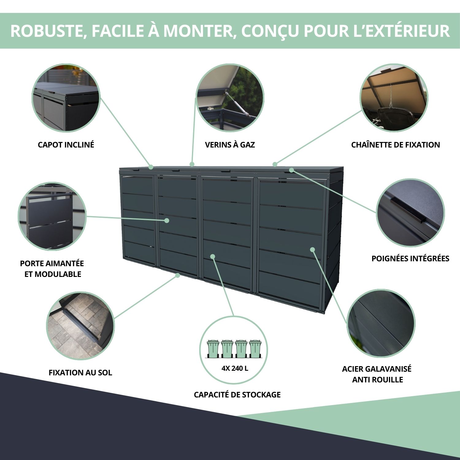 Cache poubelle extérieur quadruple – Gris anthracite – 127 x 280 x 85 cm – 4 poubelles 240 L – Ref. MAC241GR-MACMC241GR-MACMC241GR-MACMC241GR