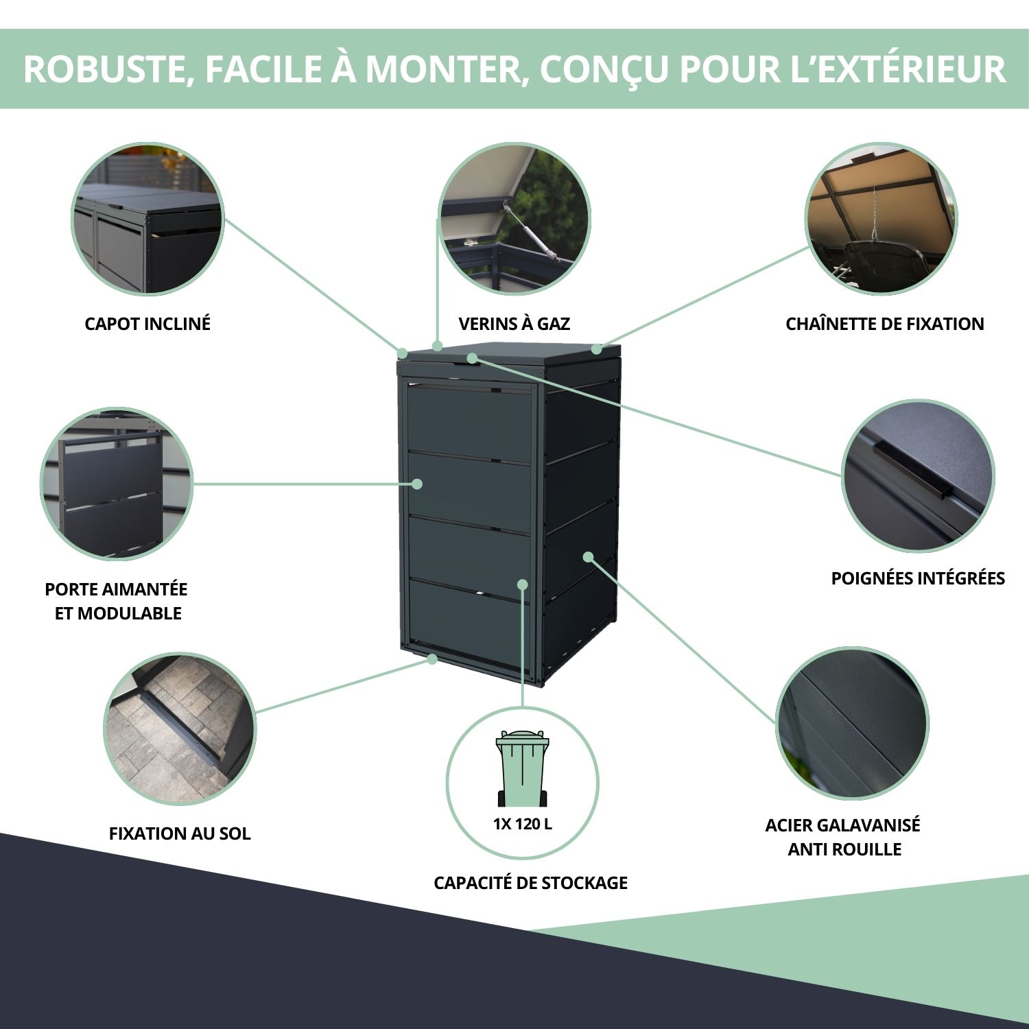 – Dissimule et protège 1 conteneur de 120 L