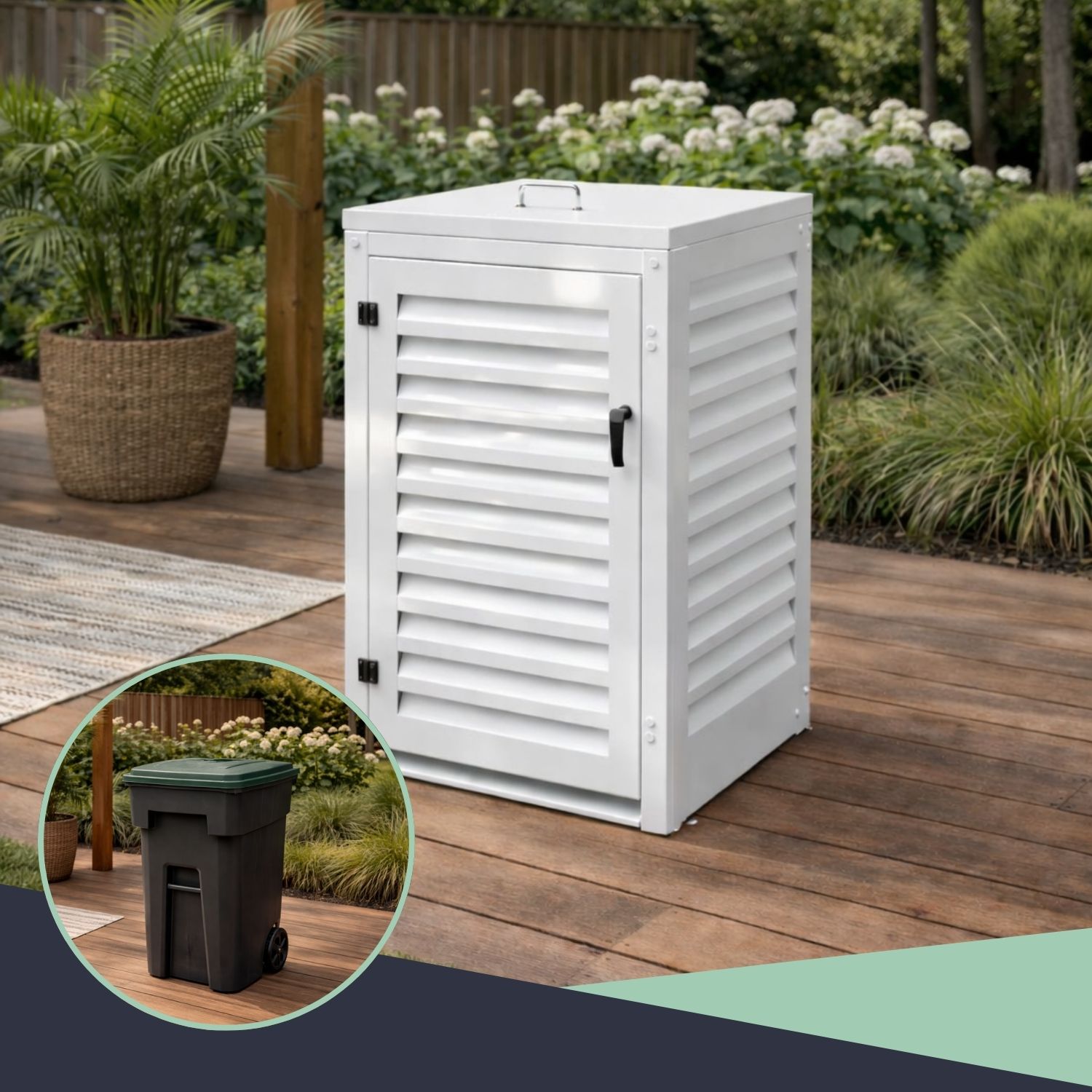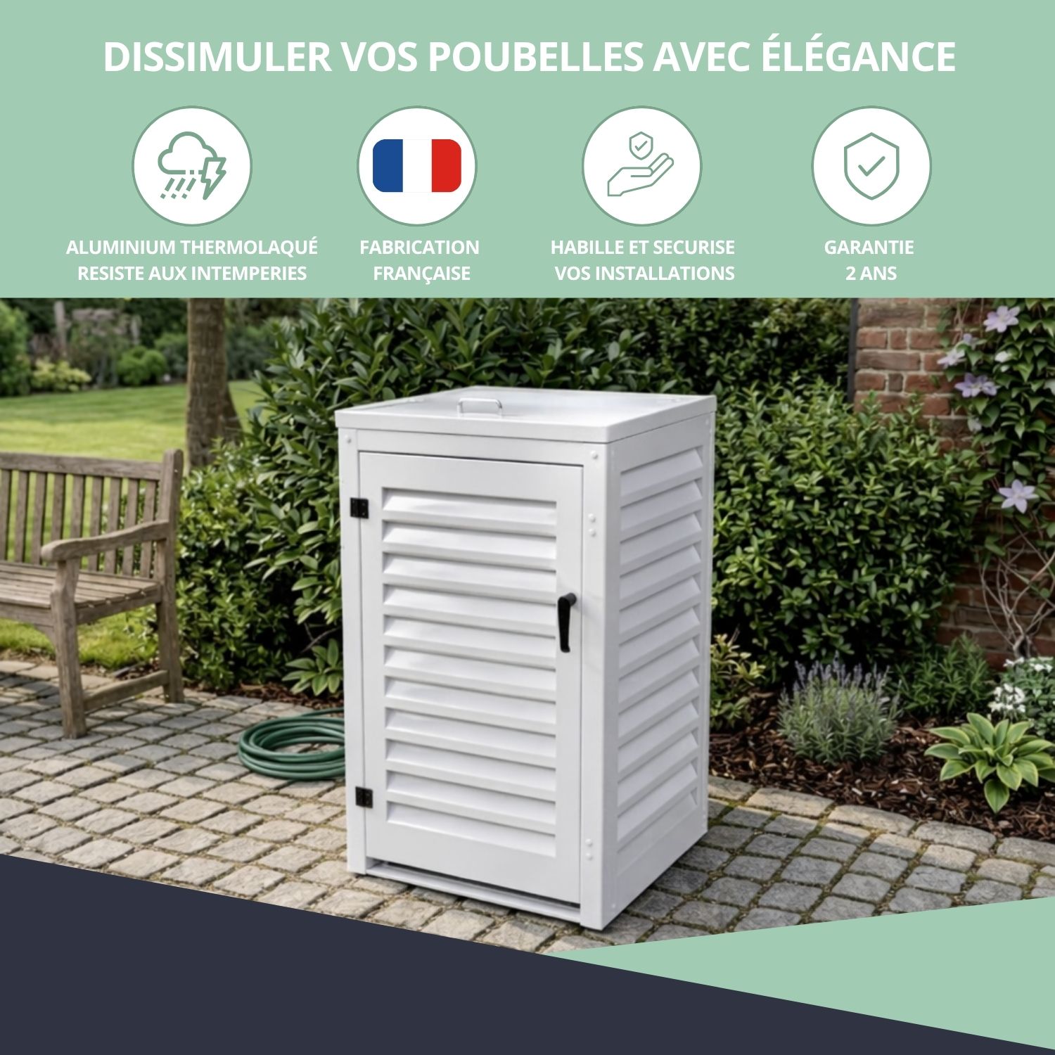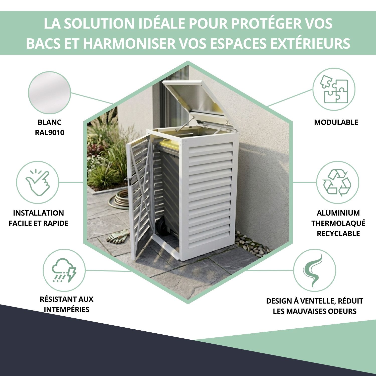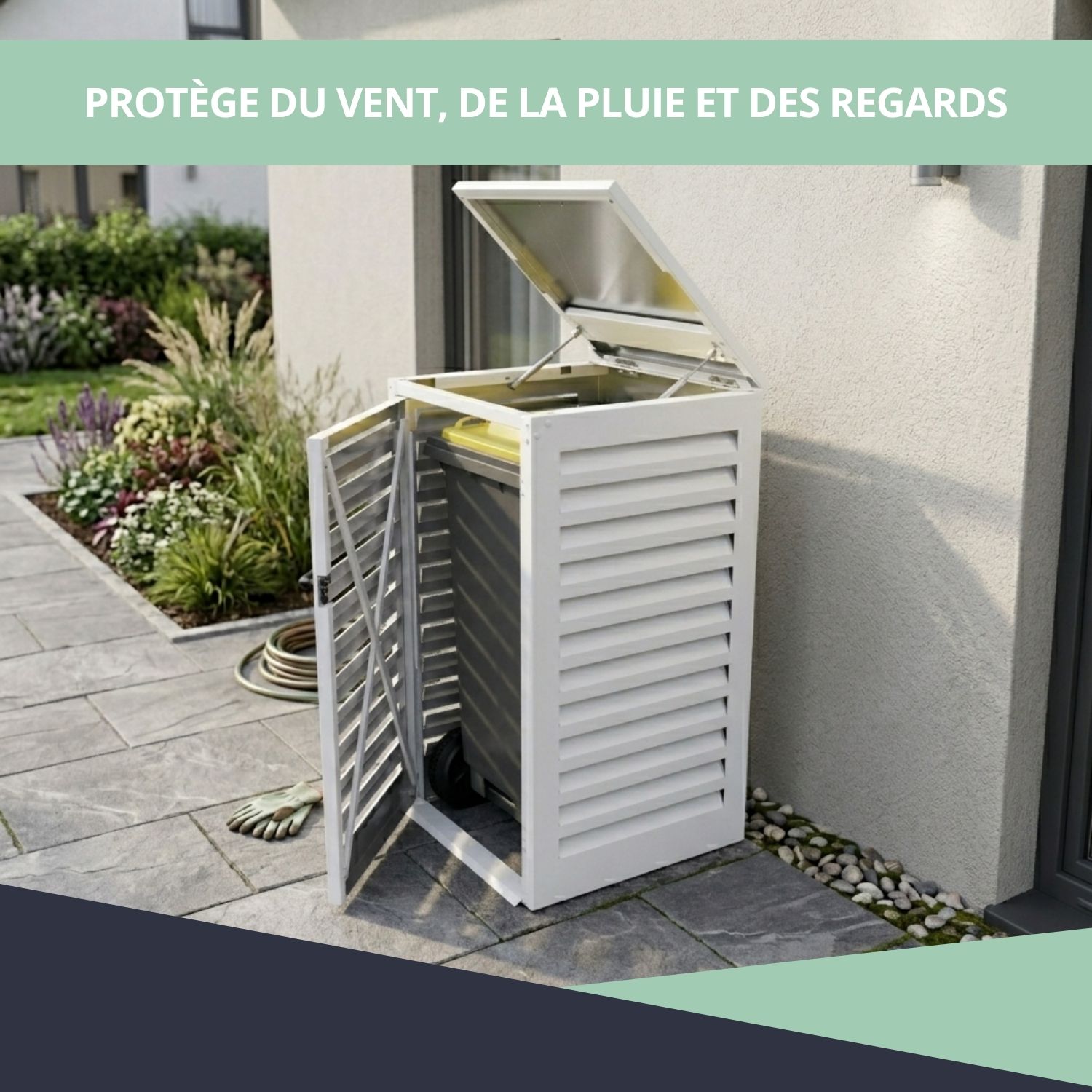 Abri poubelle simple – blanc – 115,9 x 65,4 x 62,4 cm – pour poubelle 120 L – Ref. MAC120BL