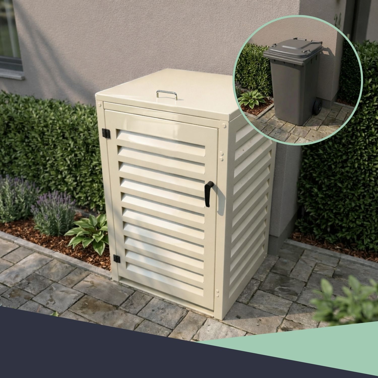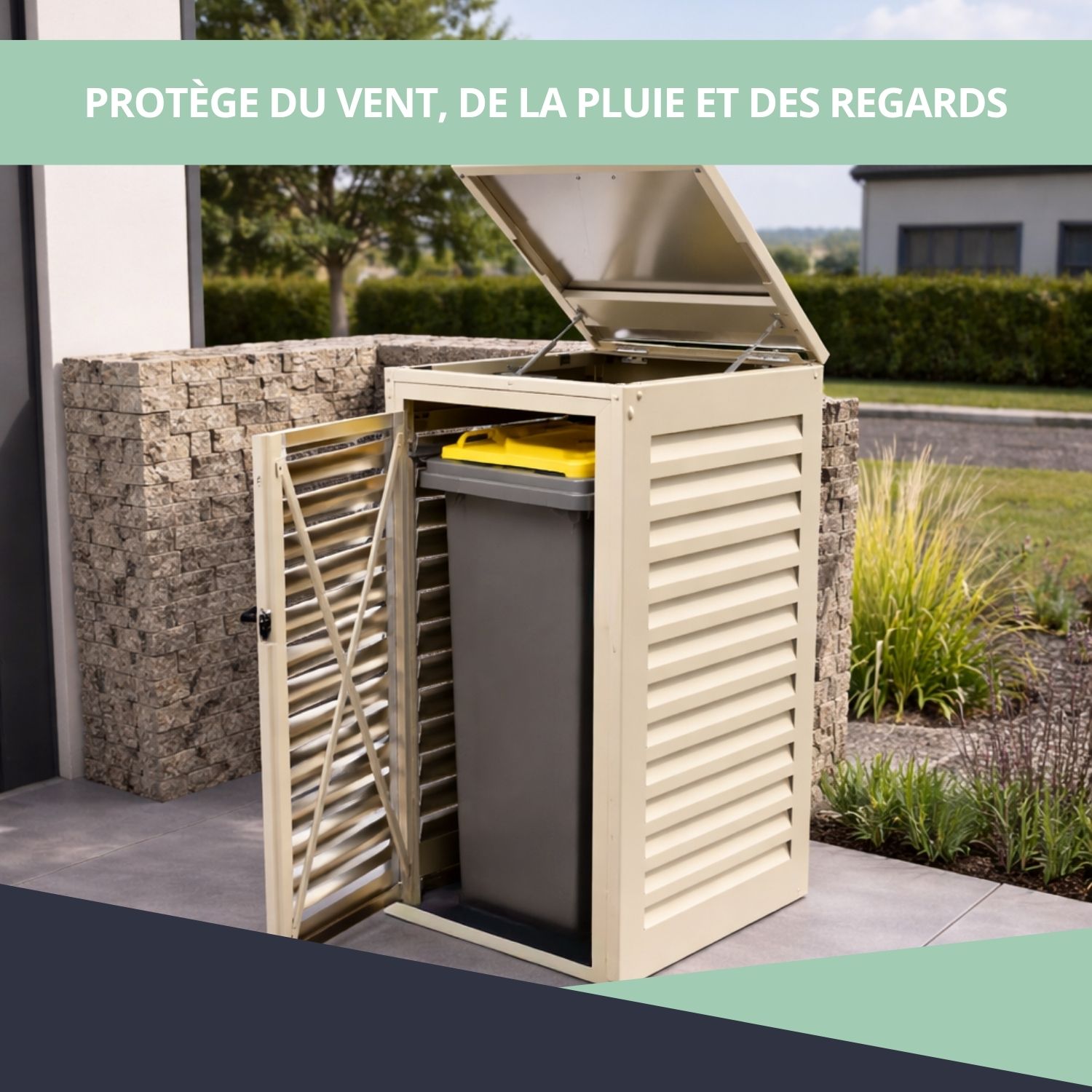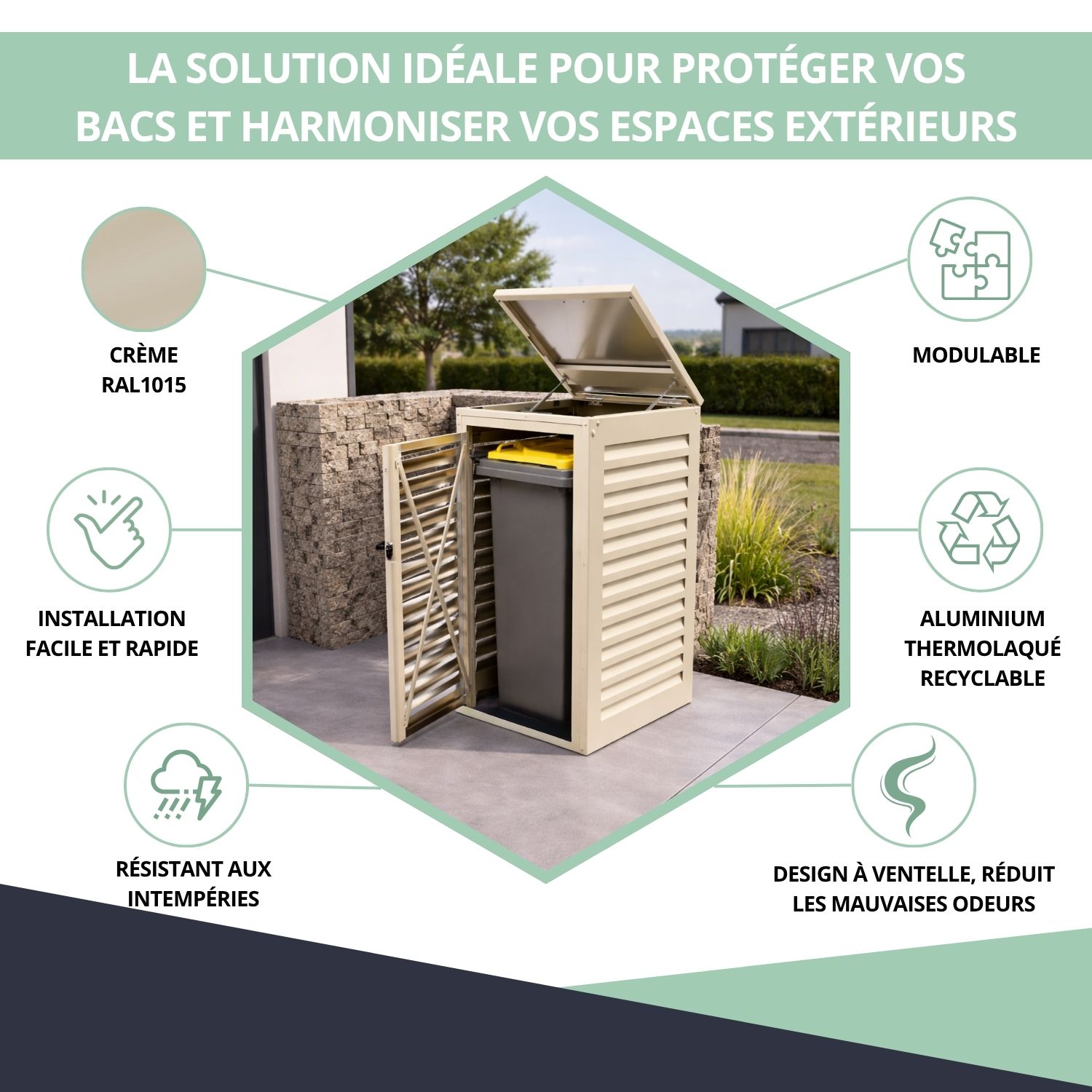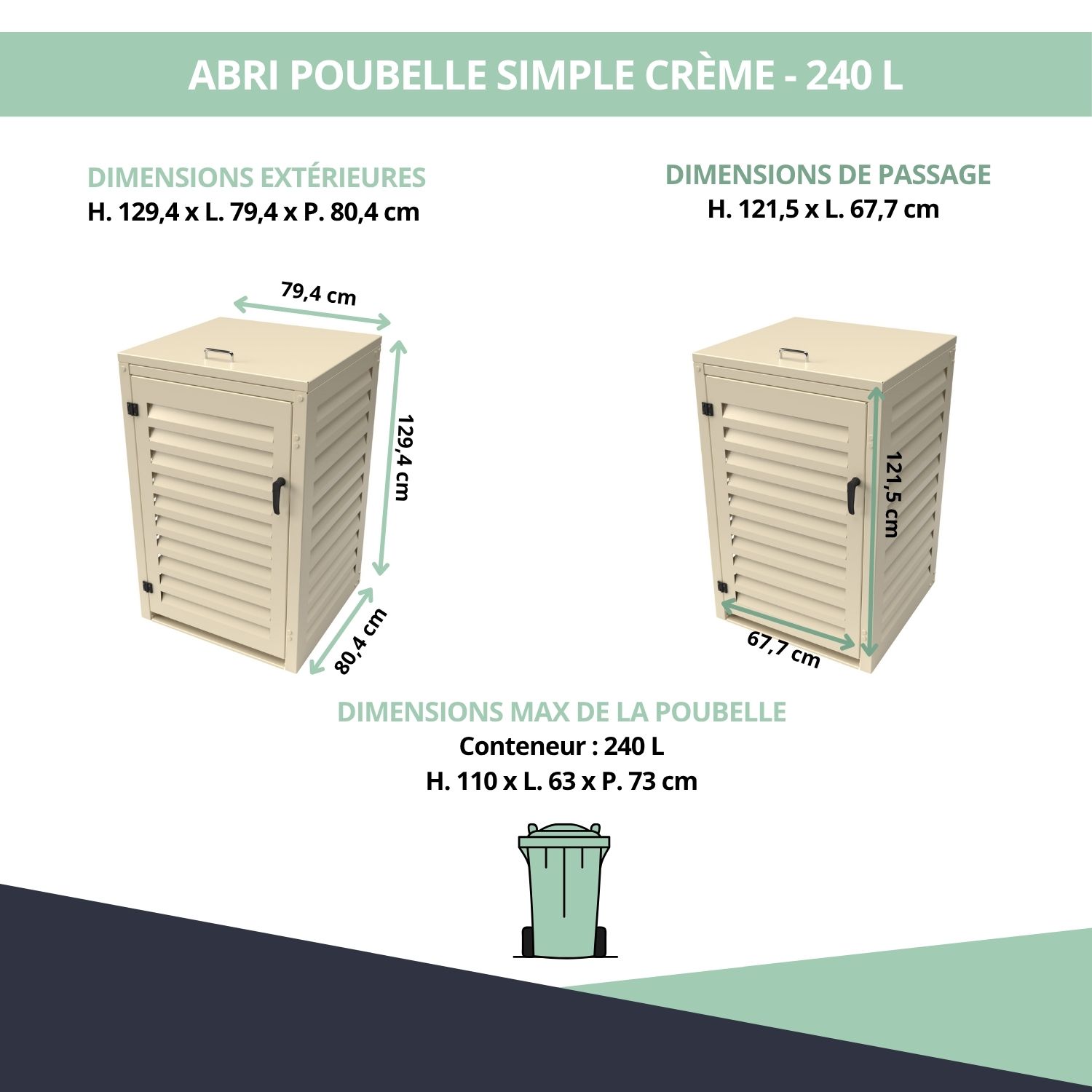 Abri poubelle simple – crème- 129,4 x 79,4 x 80,4 cm – pour poubelle 240 L – Ref. MAC240CR