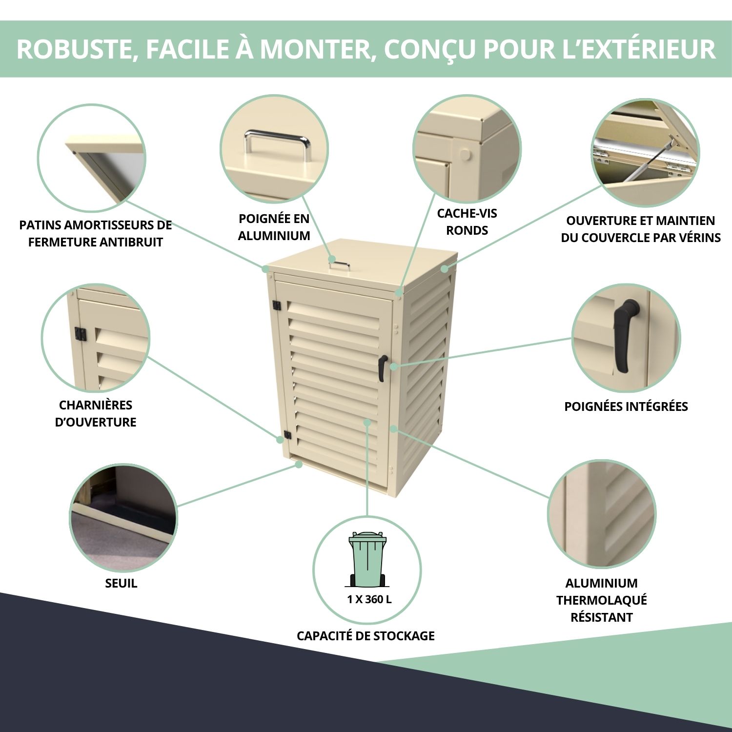 – Abri poubelle extérieur pour conteneur 360 L