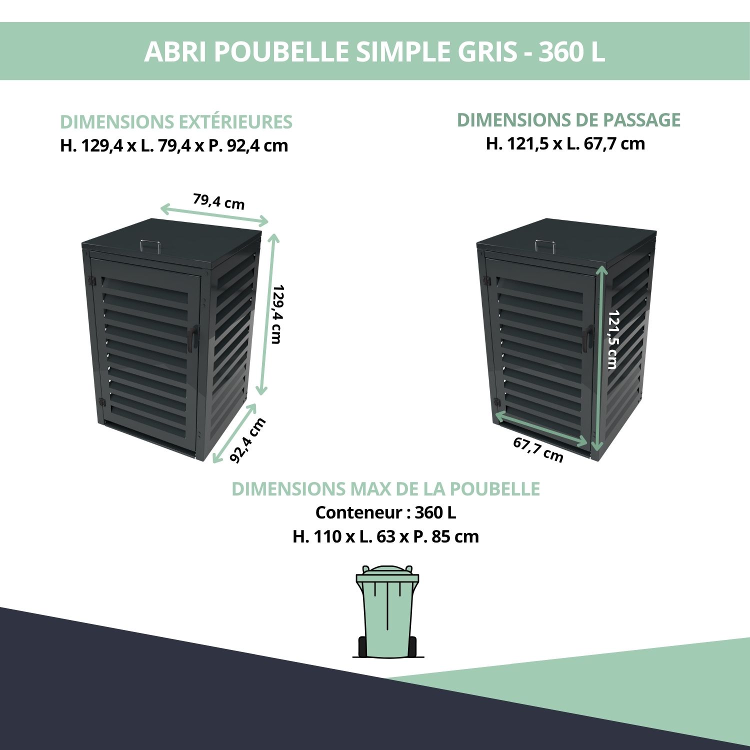 Abri poubelle simple – gris anthracite – 129,4 x 79,4 x 92,4 cm – pour poubelle 360 L – Ref. MAC360GR