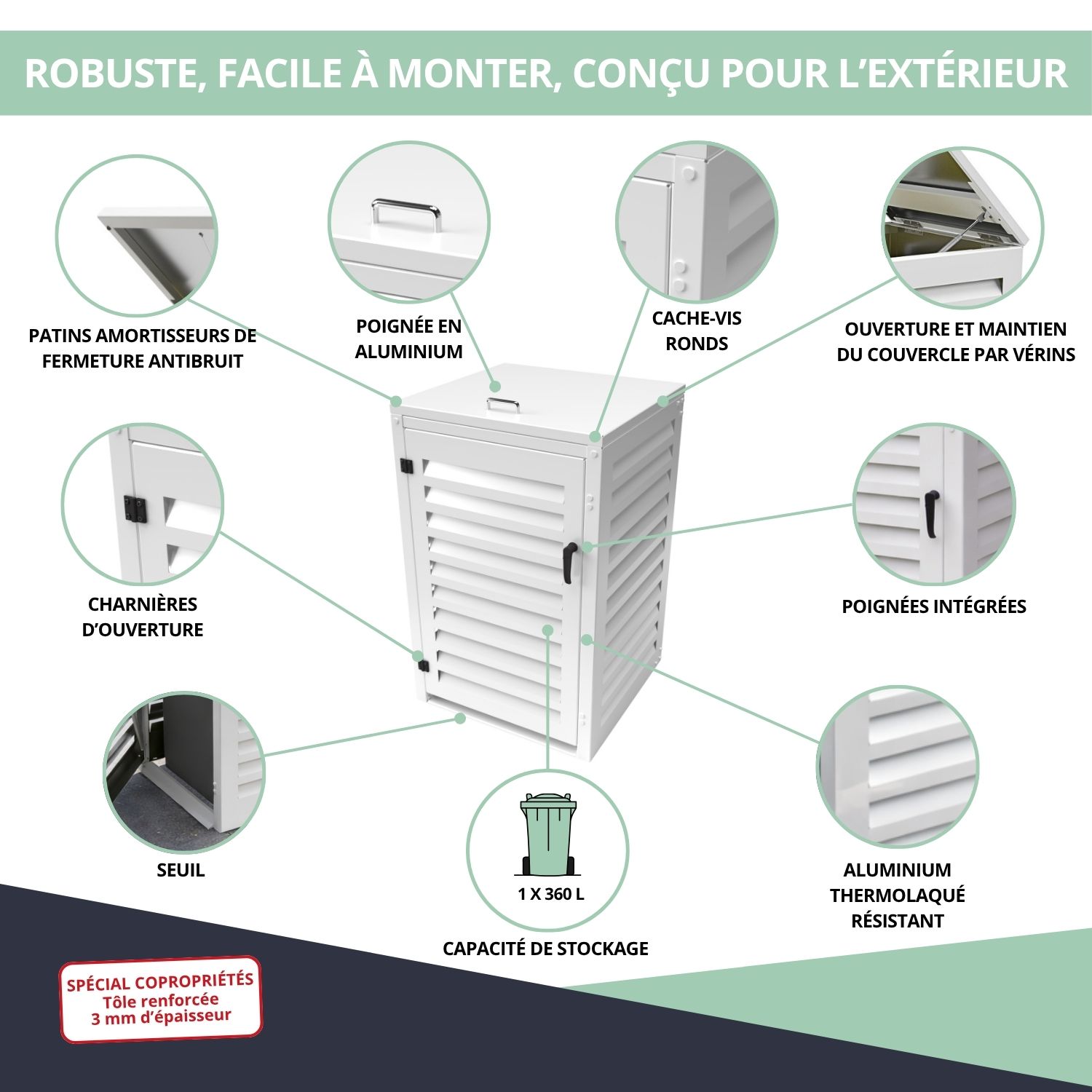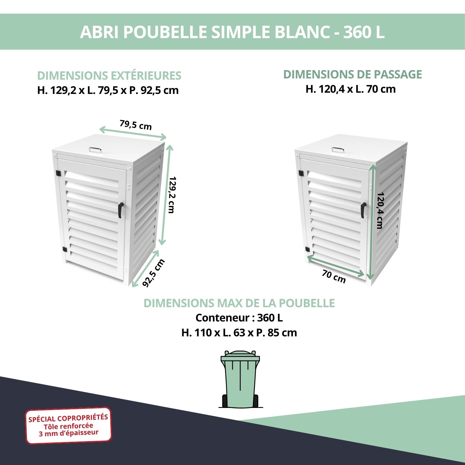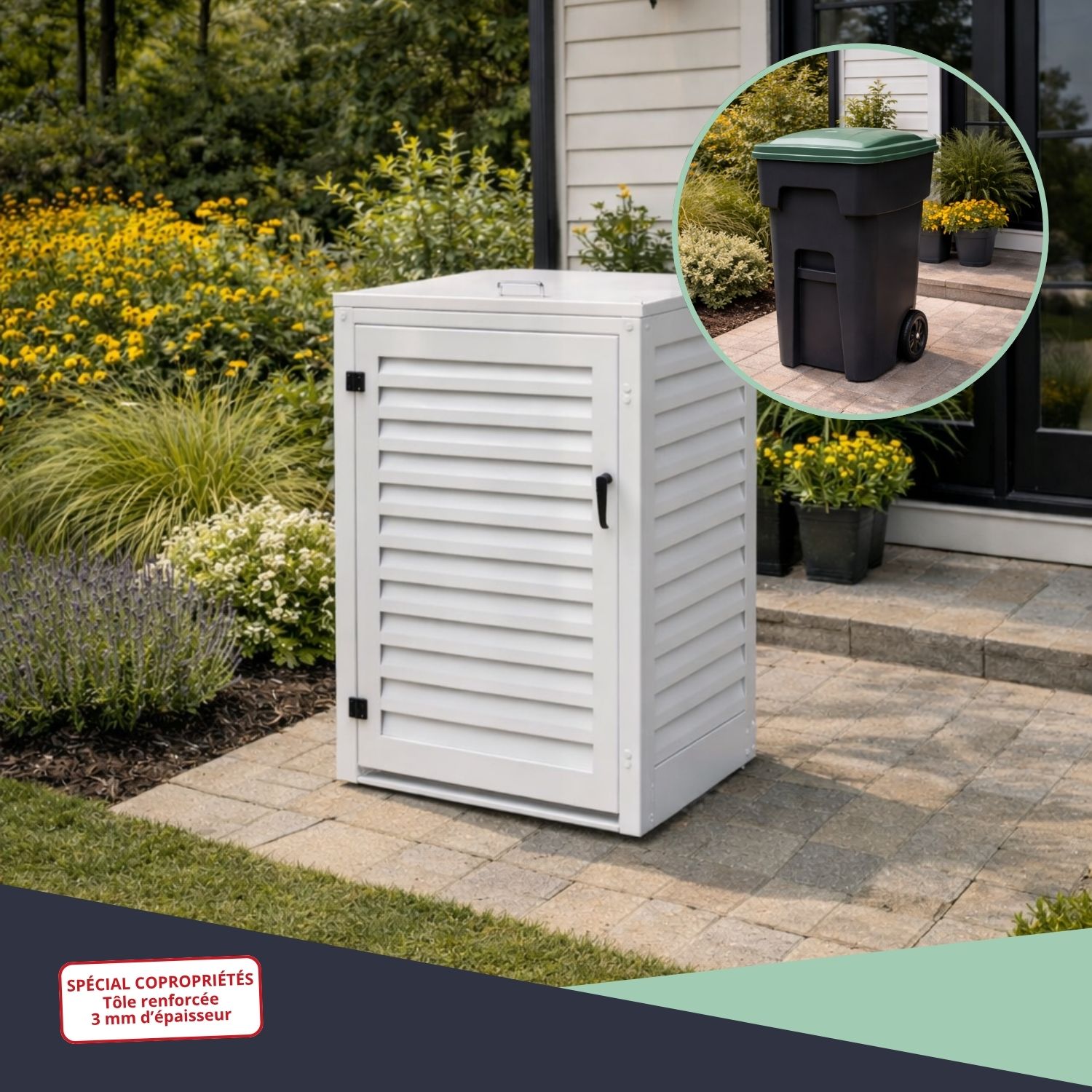 – Abri poubelle extérieur spécial copropriété pour conteneur 360 L
