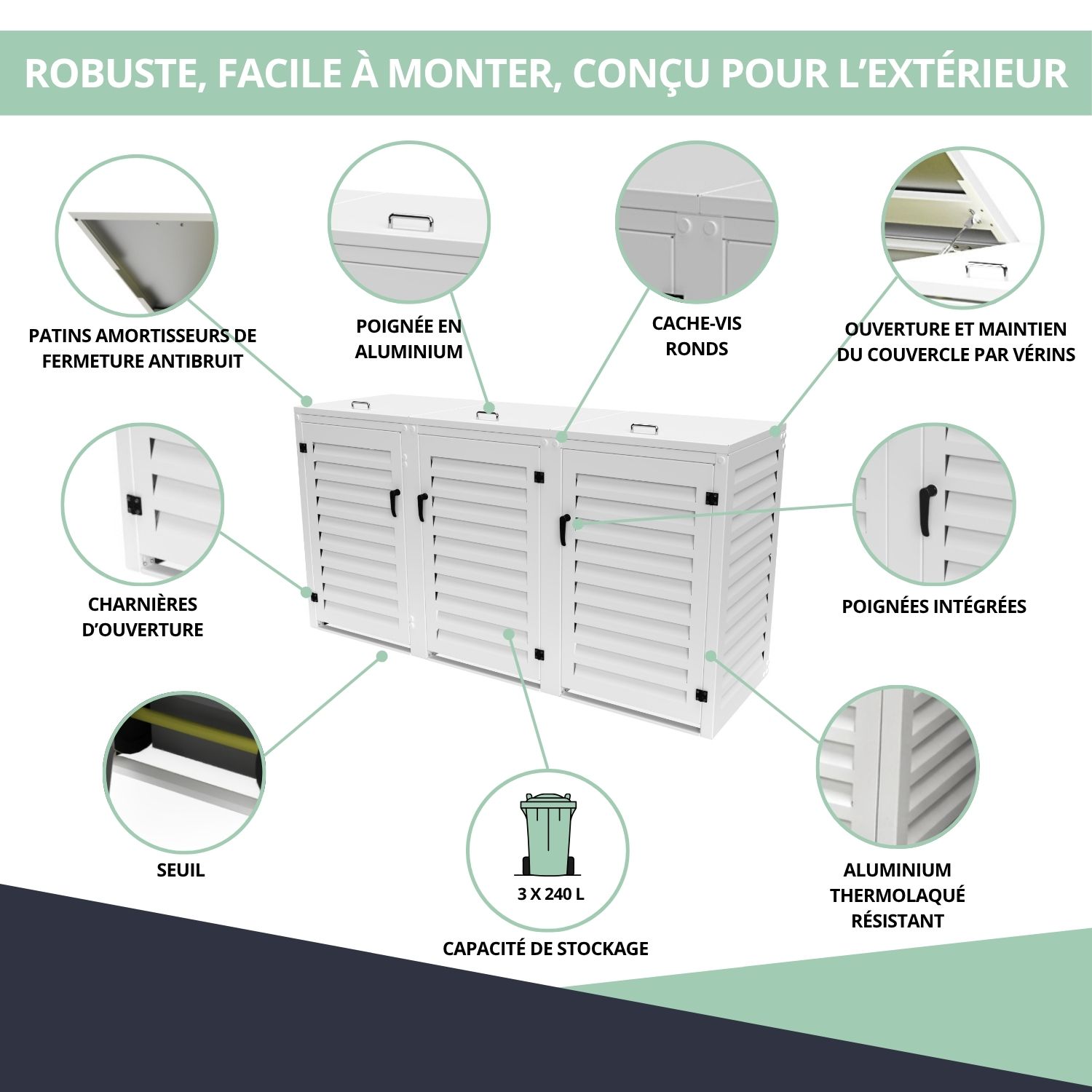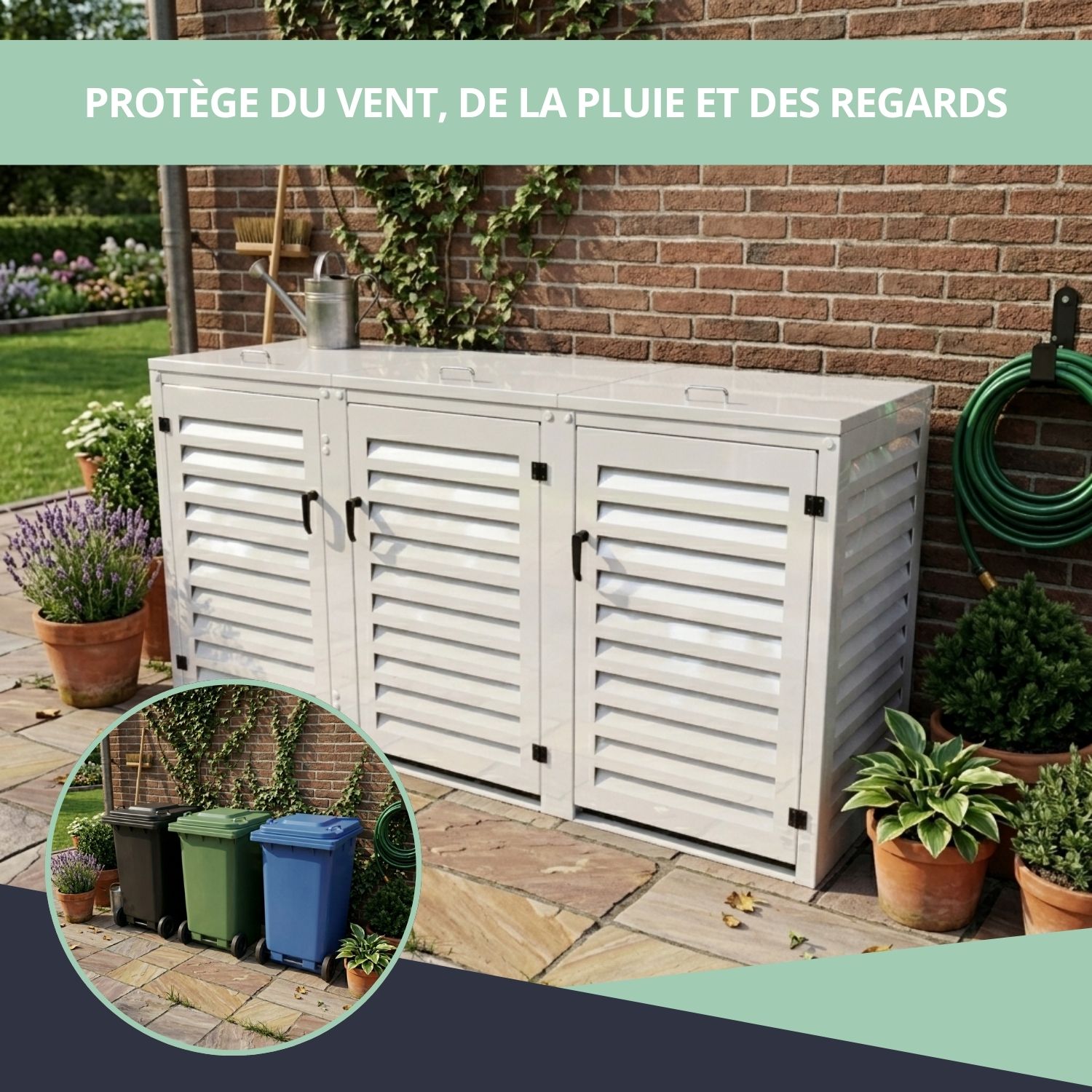 – Abri poubelle extérieur pour 3 conteneurs 240 L
