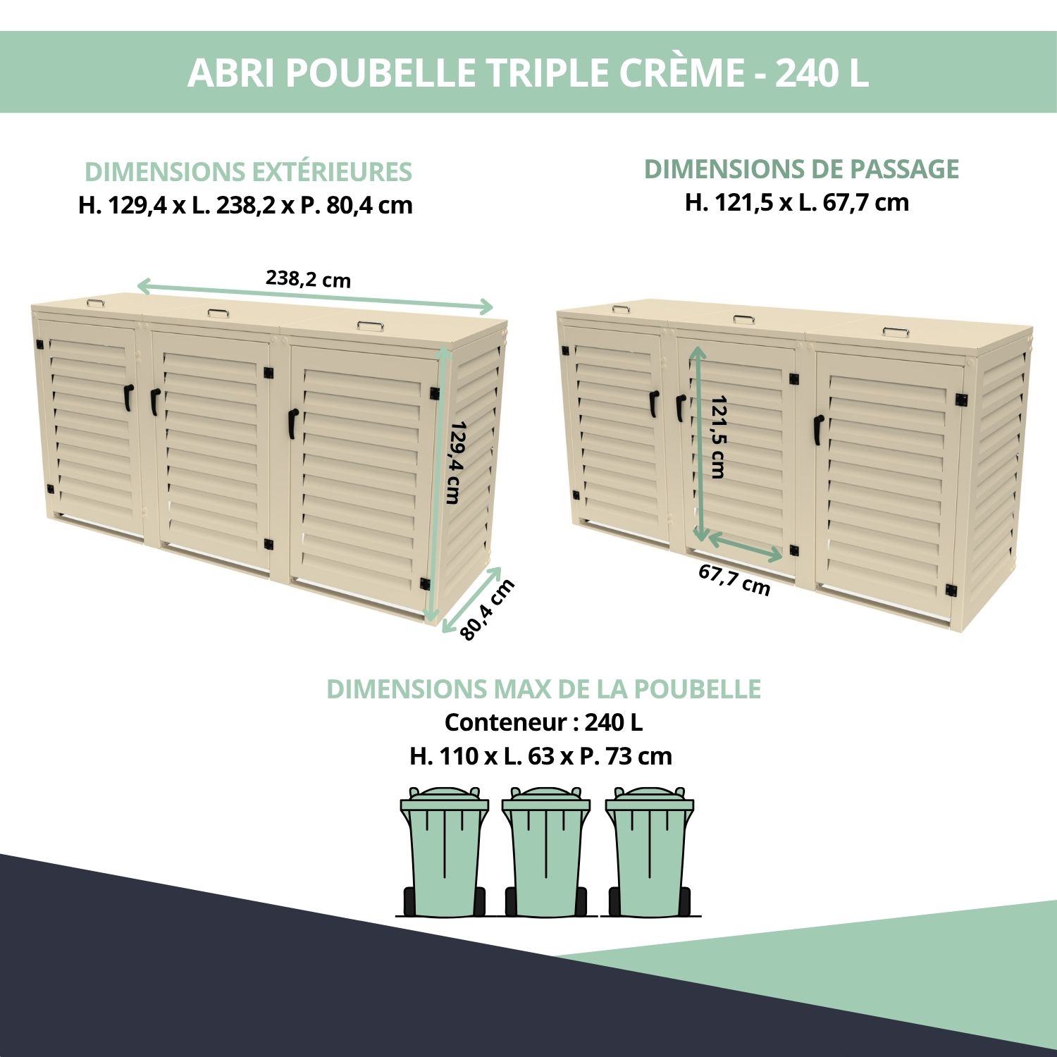 – Abri poubelle extérieur pour 3 conteneurs 240 L