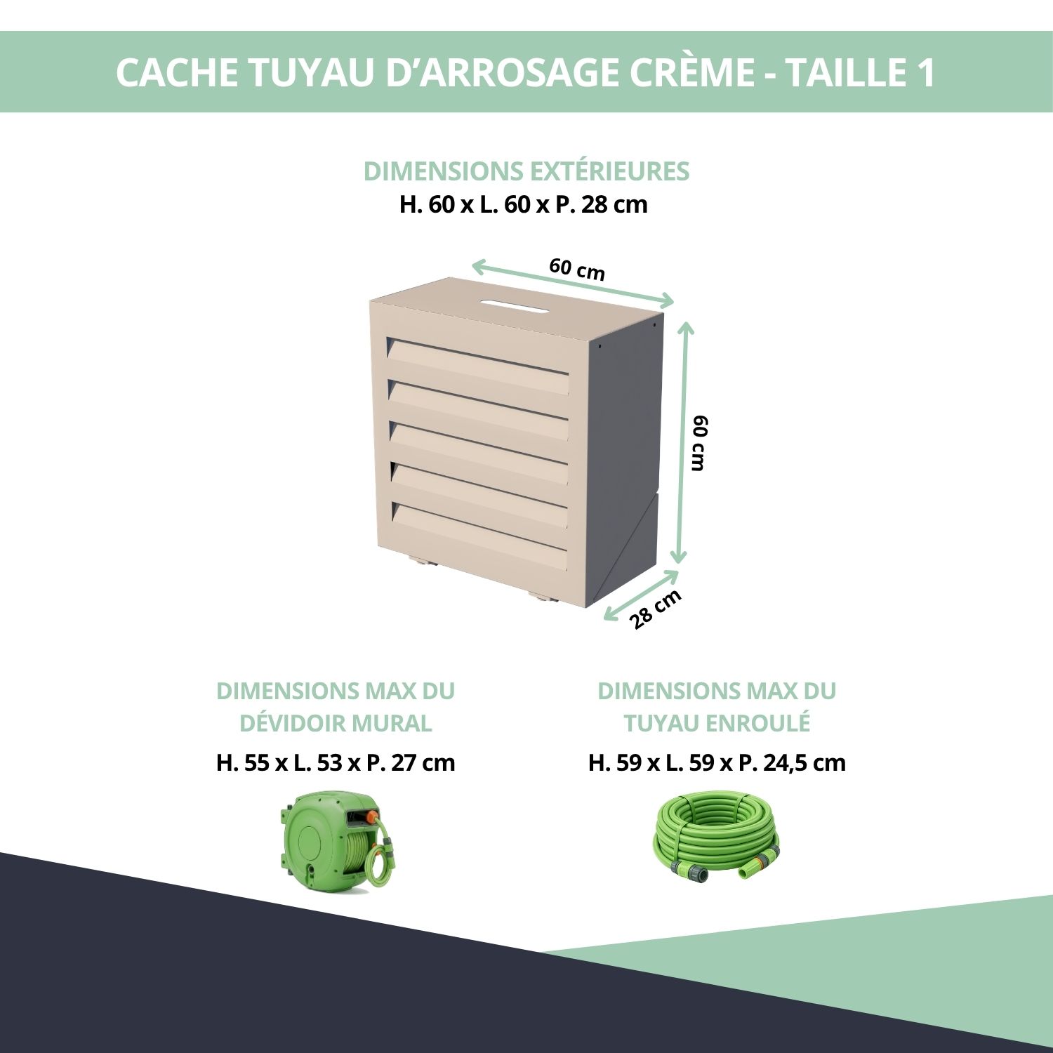 Cache tuyau d’arrosage pour dévidoir mural – crème – 60 x 60 x 28 cm taille 1 – Ref. MCTA600CR