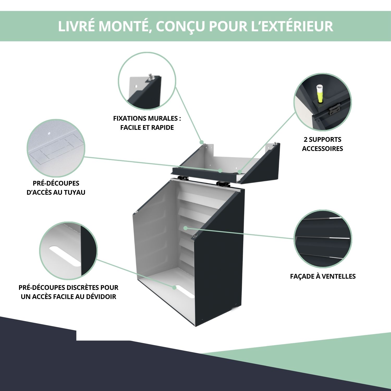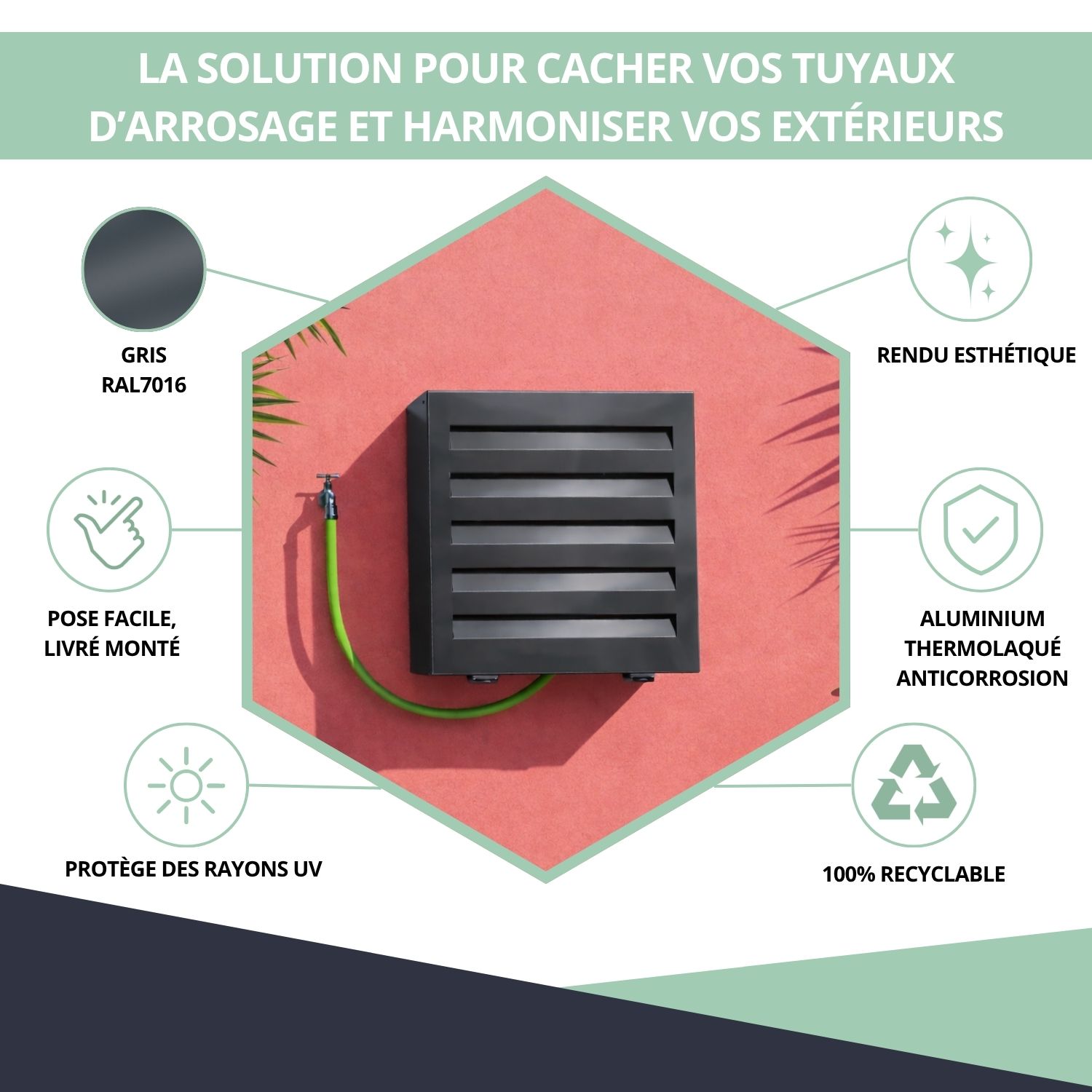 Cache tuyau d’arrosage pour dévidoir mural – gris anthracite – 70 x 70 x 28 cm taille 2 – Ref. MCTA700GR