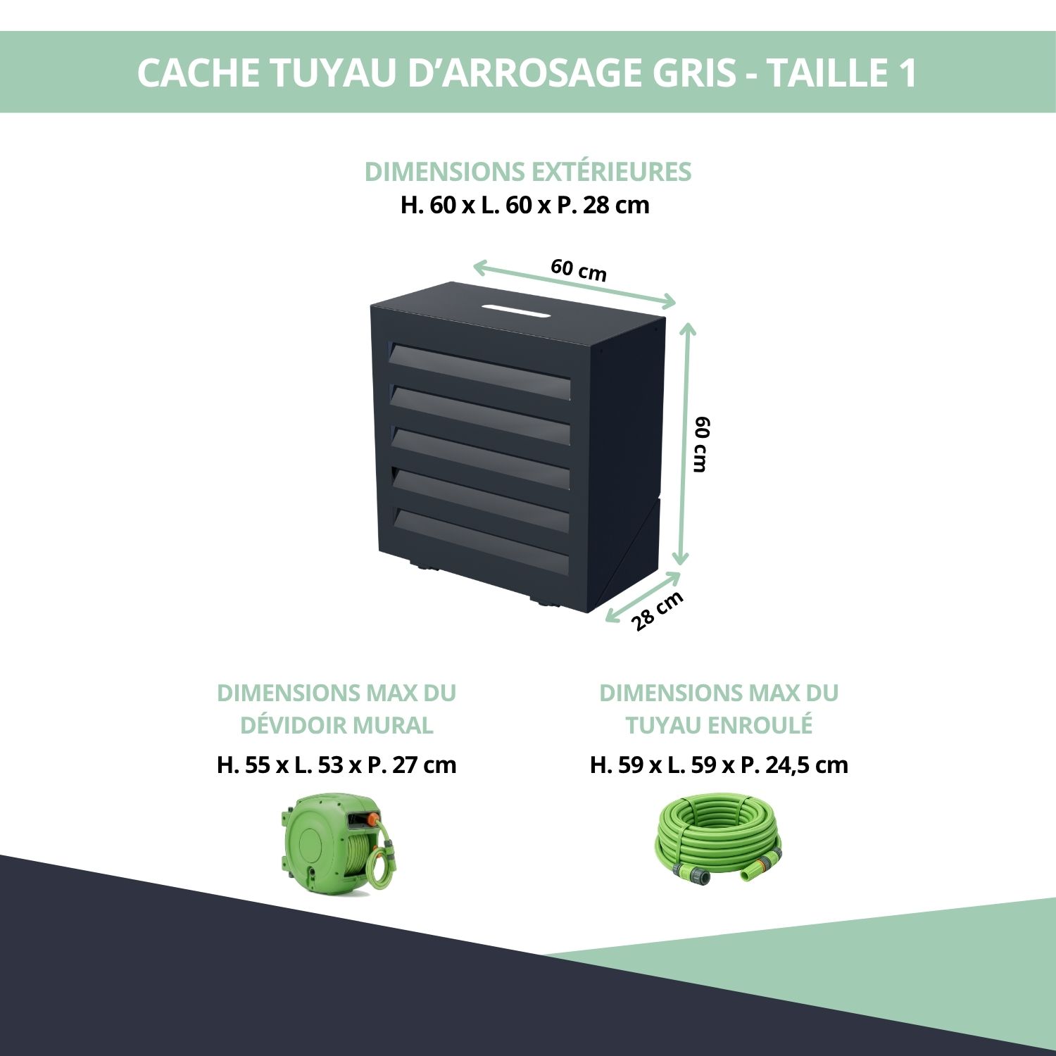 Cache tuyau d’arrosage pour dévidoir mural – gris anthracite – 60 x 60 x 28 cm – taille 1 Ref. MCTA600GR