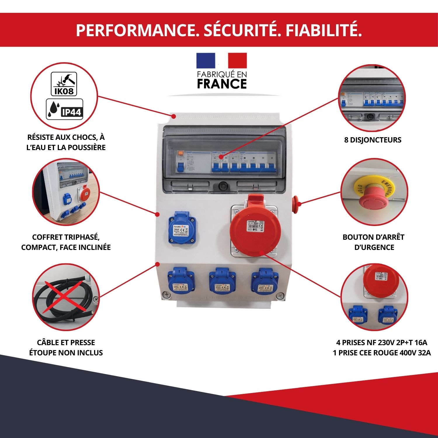 Coffret de chantier triphasé – 32A – Réf. FCC4P16TRI32